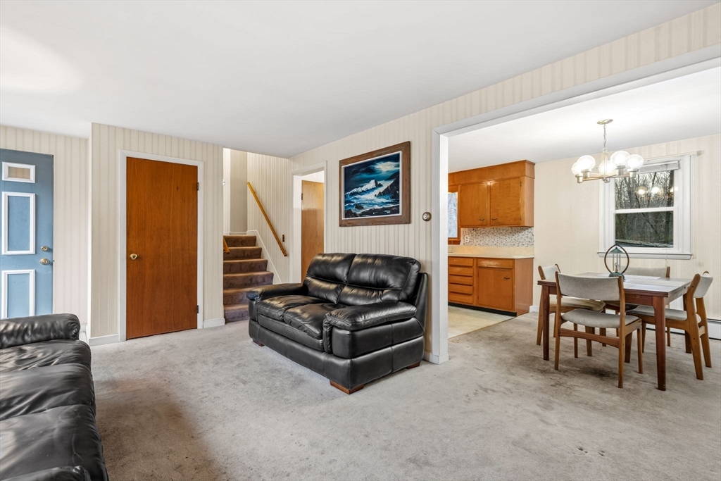 In a prime Burlington location near the mall, Lifetime Fitness, dining, shopping, and with effortless access to Routes 2 and 95, this well-maintained 3-bedroom, 1-bath multi-level home offers exceptional potential. Lovingly cared for by its original owner, the property features replacement windows, hardwood flooring beneath existing carpets, a spacious fireplaced living room, and a full kitchen with an adjoining dining area. The standout feature is the remarkable, private lot—surrounded by nature and directly abutting walking trails. Additional highlights include an attached one-car garage, a generous screened-in porch, and an inviting back deck, creating an ideal setting for outdoor enjoyment and future customization.