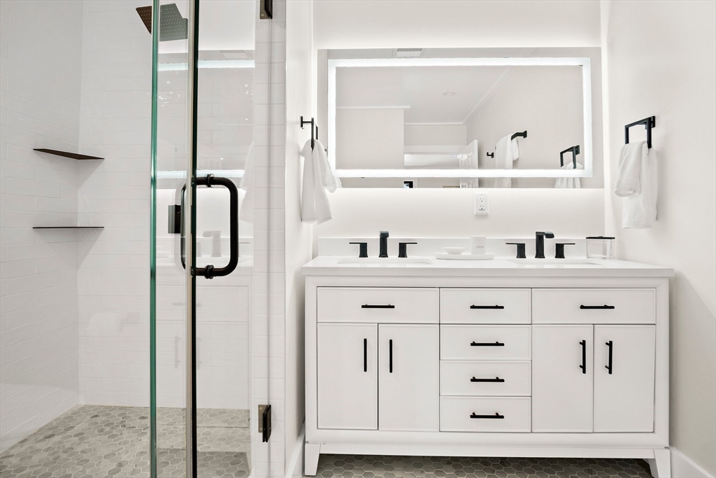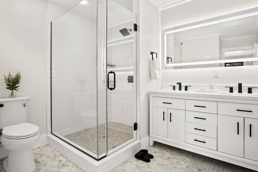 One of the best values in Bedford! This custom-built townhouse offers 5 bedrooms and 4.5 baths across a bright, modern layout with 9' ceilings, hardwood floors, and sleek black Andersen windows. The chef’s kitchen features a quartz peninsula, gas cooking, and an open dining area ideal for entertaining. A first-floor suite with full bath provides flexible options for guests, office, or studio. The primary suite includes a tiled shower, frameless glass, double vanity, and lighted mirrors. The finished lower level with full bath adds great bonus space for a family room, gym, or playroom. Enjoy a private fenced yard, one-car garage, extra parking, and no condo fee. Exceptional space, design, and value—this townhouse is a must-see!