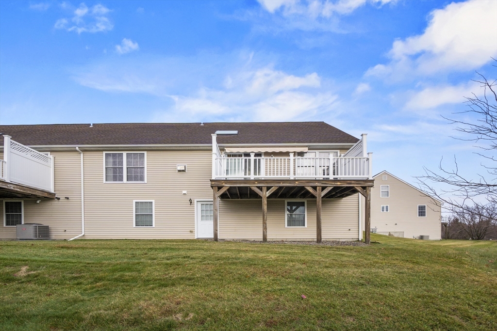 Welcome to this loft-style end unit in the desirable 55+ community of Hillside Village Estates, blending comfort, function, & beautiful design across two spacious levels. The sun-filled main floor features a vaulted-ceiling living room w/ gas fireplace, skylight, & sliders to a composite deck w/ a new retractable awning & lovely views. The kitchen offers hardwood & tile flooring, granite counters, a breakfast bar, & a charming bay window. A main-level suite adds convenience w/ a walk-in closet & a full bath w/ a 2023 tiled shower & granite vanity. Upstairs, the second bedroom has its own full bath & a generous loft perfect for a home office, lounge, or private guest suite. Recent updates include heating within five years, a 2020 hot water heater, fresh interior paint throughout, & refinished hardwoods. Additional perks include first-floor laundry, an attached two-car garage, & a walkout basement. W/ nearly 2,200 sq. ft., loft units like this are rare— last one sold was 15 months ago.