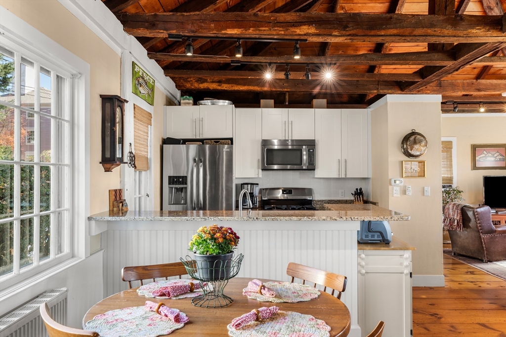 Beautiful water views from every room of this detached home on Fish Flake Hill! This gem was once the original "West Farms School House" and was relocated to this coastal lot in 1972. Upon entering you will find an open floor plan with wood beamed cathedral ceilings, a living room with a wood burning stove, kitchen with granite island a dining area and a family room, all with wide pine floors and lots of natural light. Great open space for entertaining with French doors leading to a large private deck with breathtaking views of Beverly Harbor. The lower level has a guest room, a master bedroom with double closets and a full bath with walk in tiled shower. There is plenty of storage, closet space and in house laundry. This one of a kind home combines new amenities and updates with the charm of its past. Short walk to Independence Park, Dane St. beach, Beverly Harbor, the commuter rail and downtown restaurants and shops. Prime location, amazing layout and stunning ocean views!