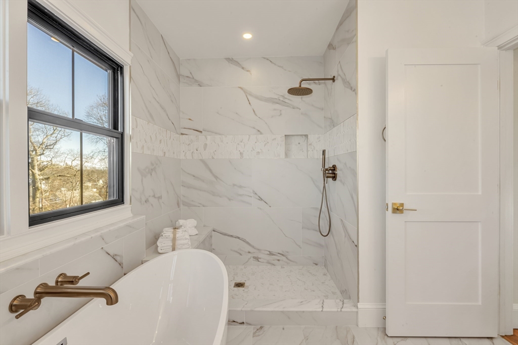 Welcome to an extraordinary home on one of the most sought-after streets in town. Rarely available on Stratford Street: this 2025 builder-owned home is a reimagined work of art featuring top-tier finishes and design on every level! Each fixture and finish speaks to a level of craftsmanship rarely seen—and the multi-level layout is tailor-made for both grand entertaining and everyday ease. The heart of the home is the chef’s kitchen with Café appliances, adjacent to formal dining and a living room anchored by an accent wall & custom built bookcase. On the 2nd floor, enjoy a grand primary suite with a full bath and walk-in closet, two additional bedrooms, a full bath, and a laundry room. The 3rd floor offers a versatile flex space—office/guest room. Finished walk-out basement + full bath. Outdoors, a banquet-sized raised patio delivers serene & commanding views of a lush 13k+ SF garden! Minutes to the Highland commuter train to Boston, Centre Street’s fine restaurants, Cafes & shopping!