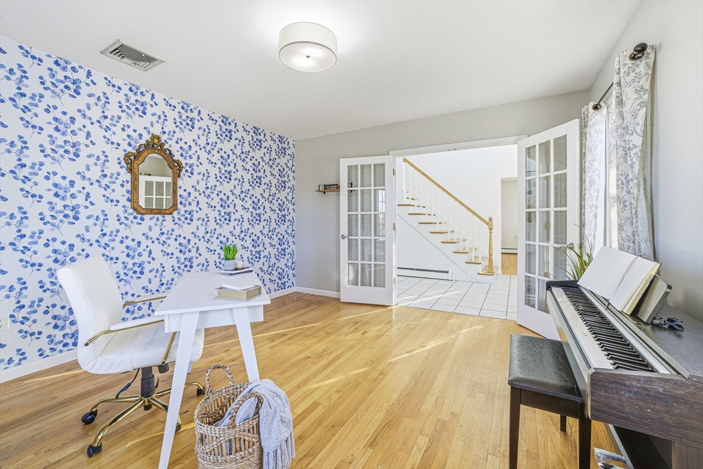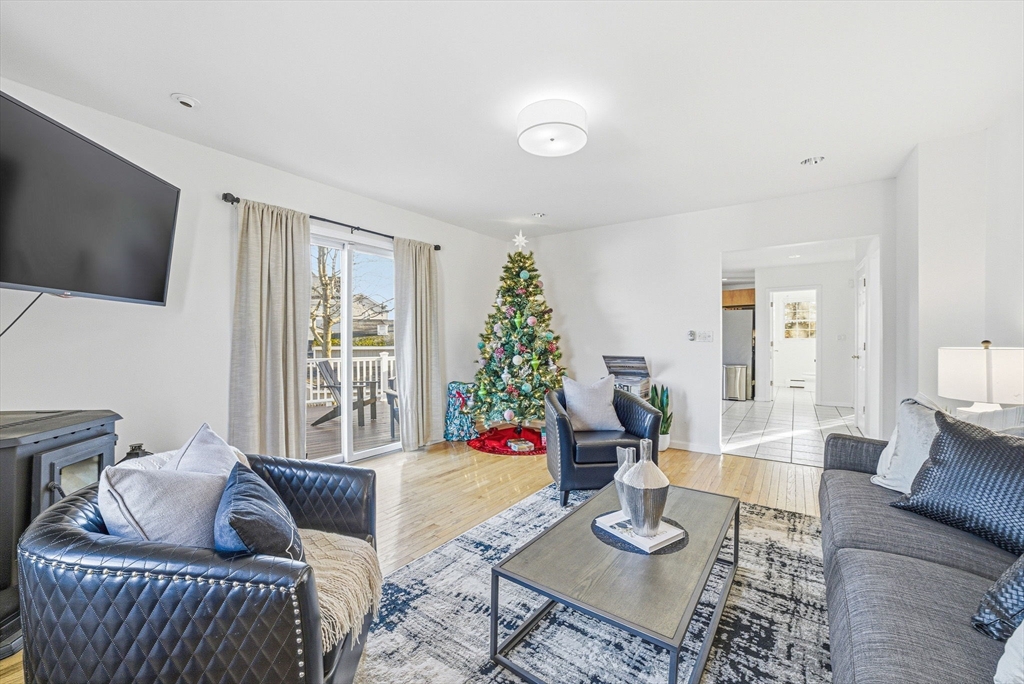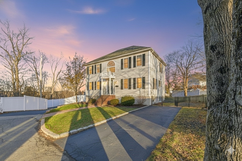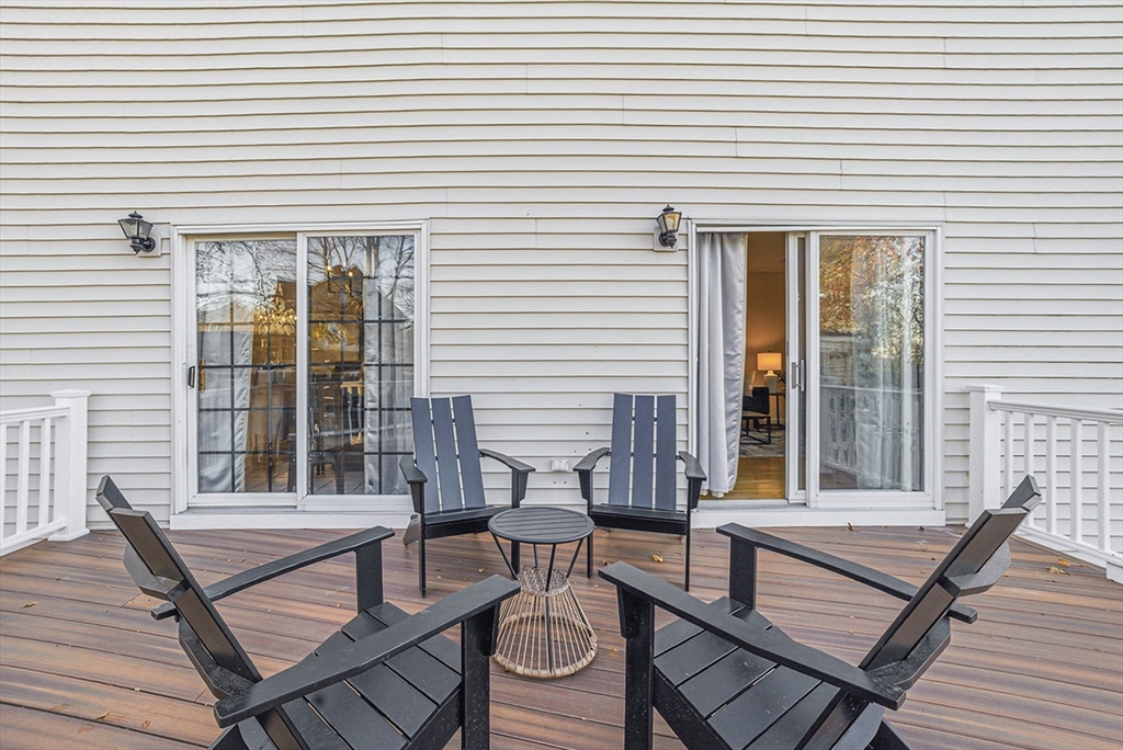 Welcome to 5 Stanley Terrace — a perfectly perched young colonial on a quiet dead-end road, offering a two-car garage & 2 separate driveways with room for everyone! The entry impresses instantly with its dramatic two-story balcony and new chandelier. Enjoy a timeless eat-in kitchen that opens to a beautiful multi-tiered deck ideal for entertaining, plus a cozy living room with a wood-stove and second deck access. A welcoming formal dining room, sun-drenched office or den & half bath complete the 1st floor. The private primary suite upstairs features a large walk-in closet & spa-like bath with a soaking tub & walk in shower with double vanity. The finished lower level offers fantastic potential for an accessory dwelling unit or teen suite with full-size windows & 2 exterior access points. Adding to the uniqueness is a heated outbuilding with skylights—perfect for a hot tub room, yoga studio, home gym, office, or teen hangout. A fantastic commuter location too, only 10 miles to Boston!
