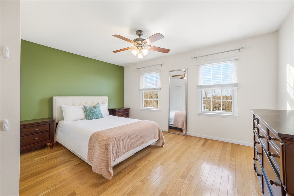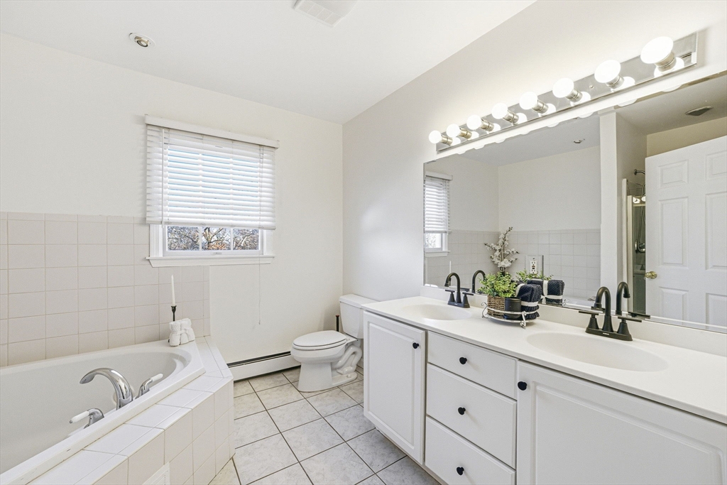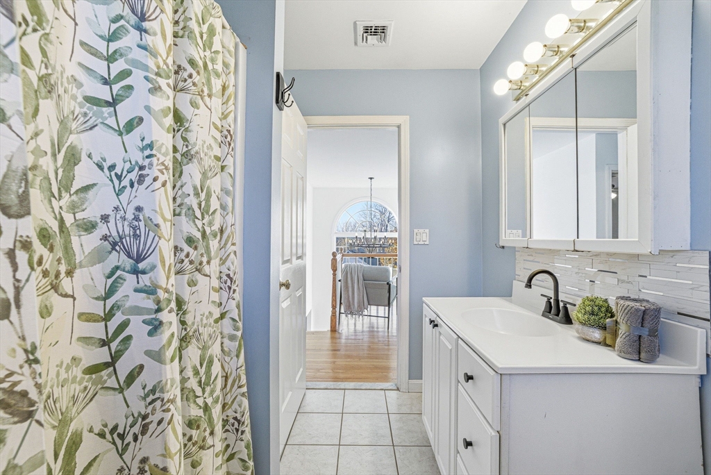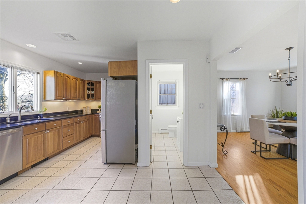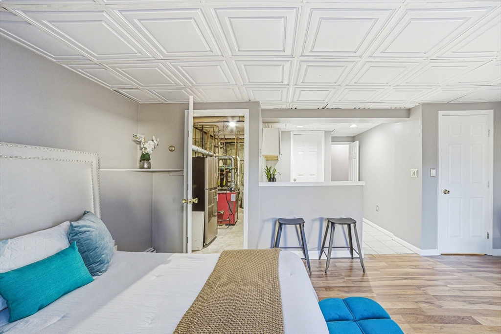 Welcome to 5 Stanley Terrace — a perfectly perched young colonial on a quiet dead-end road, offering a two-car garage & 2 separate driveways with room for everyone! The entry impresses instantly with its dramatic two-story balcony and new chandelier. Enjoy a timeless eat-in kitchen that opens to a beautiful multi-tiered deck ideal for entertaining, plus a cozy living room with a wood-stove and second deck access. A welcoming formal dining room, sun-drenched office or den & half bath complete the 1st floor. The private primary suite upstairs features a large walk-in closet & spa-like bath with a soaking tub & walk in shower with double vanity. The finished lower level offers fantastic potential for an accessory dwelling unit or teen suite with full-size windows & 2 exterior access points. Adding to the uniqueness is a heated outbuilding with skylights—perfect for a hot tub room, yoga studio, home gym, office, or teen hangout. A fantastic commuter location too, only 10 miles to Boston!