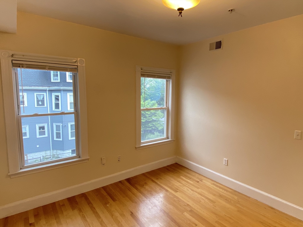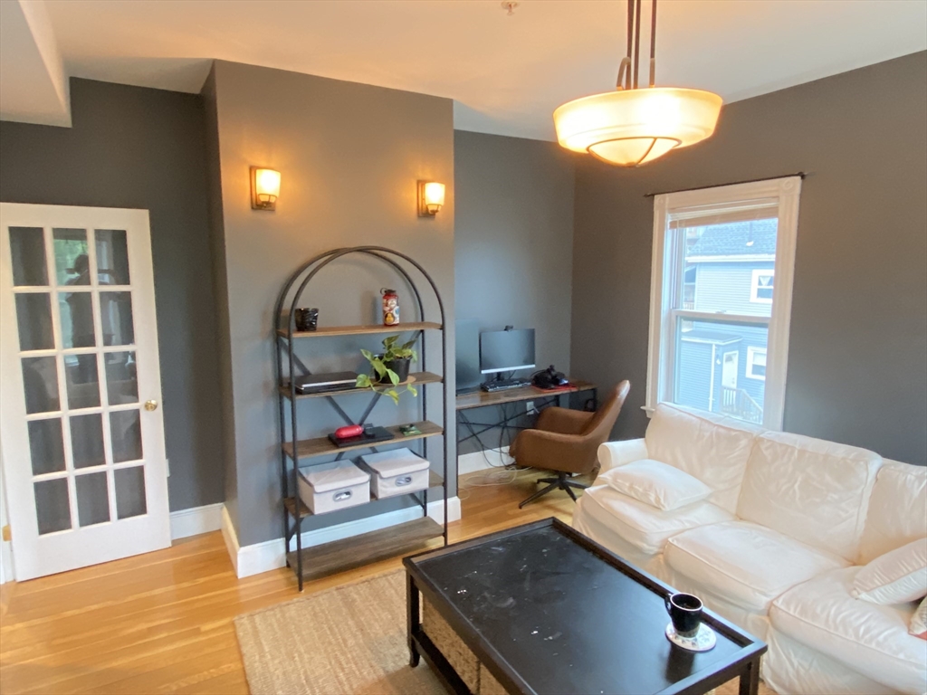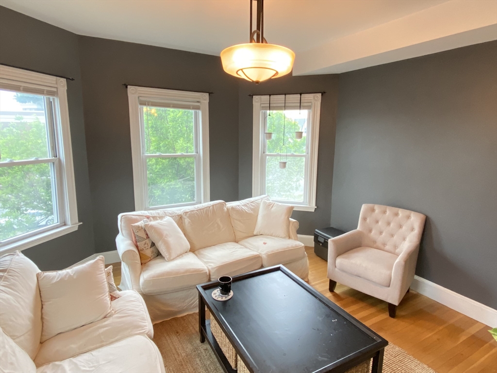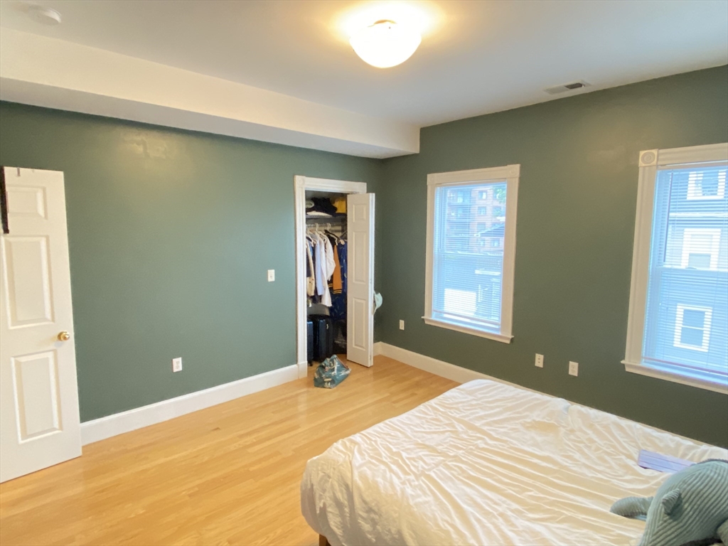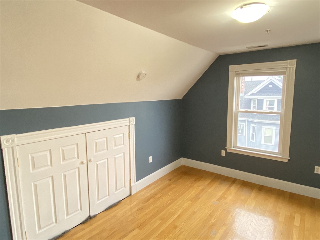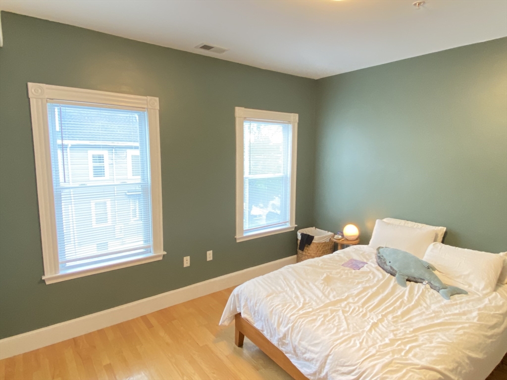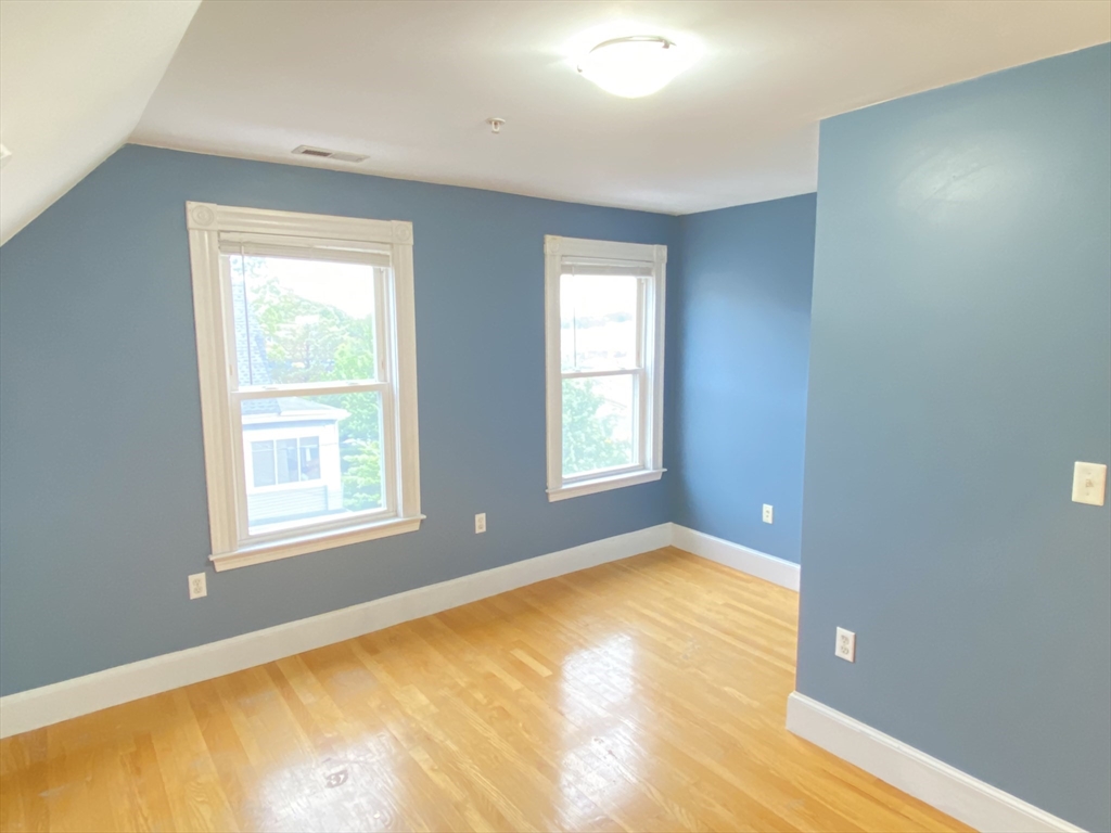 A wonderful opportunity to rent a four-bedroom, two bathroom, second and third floor half duplex condo in Medford. This is a fabulous value! A sun-filled living room with lovely Boston skyline views, and a large walk-in closet, are found at the front of the dwelling. This level also features three bedrooms with closets, both bathrooms, private staircases to a front a side door, and a well-proportioned kitchen with a breakfast bar opening into a dining room. The top floor offers another bedroom, den, office or recreation room and an enormous attic closet room. Hardwood floors throughout with new appliances, in-unit laundry and central air! One off-street parking space included. Ideally situated on a bus route and near restaurants, shops, the Malden Center orange line MBTA stop, and more. Don't miss it!