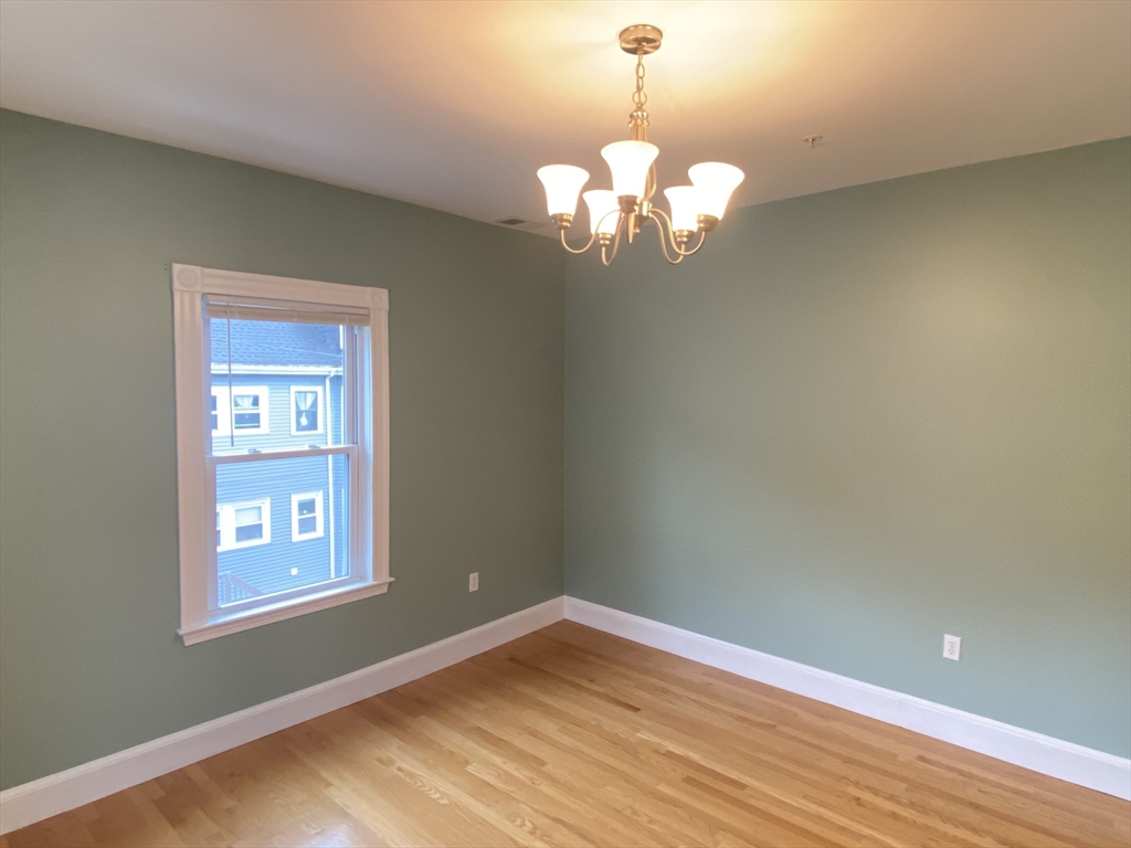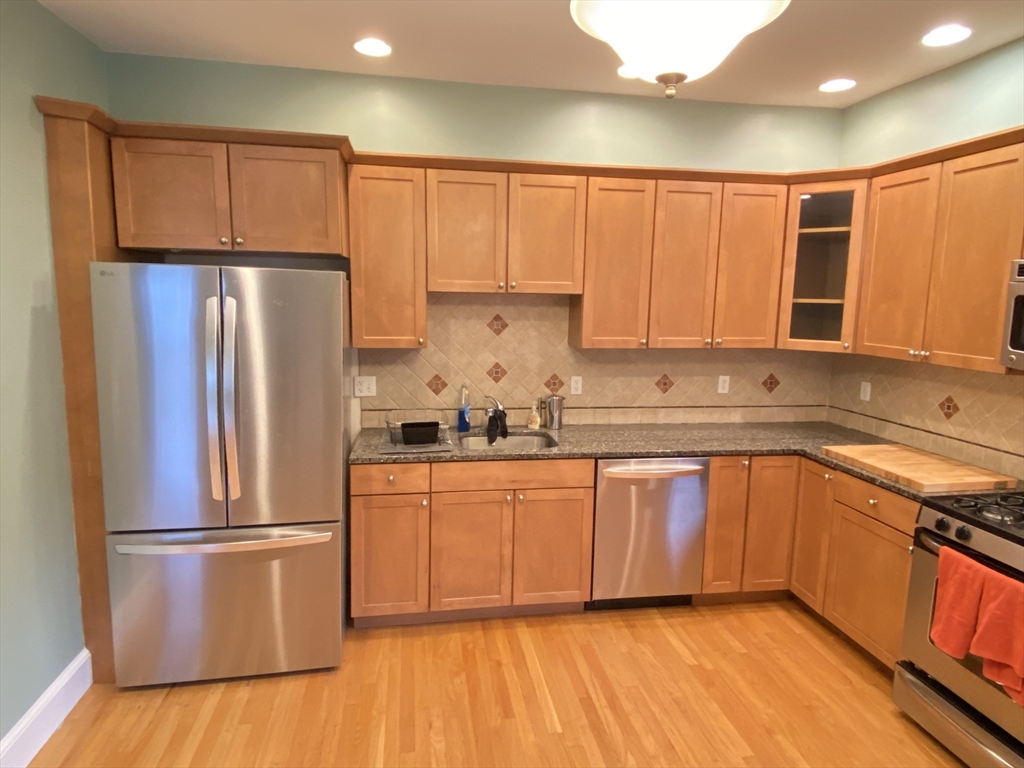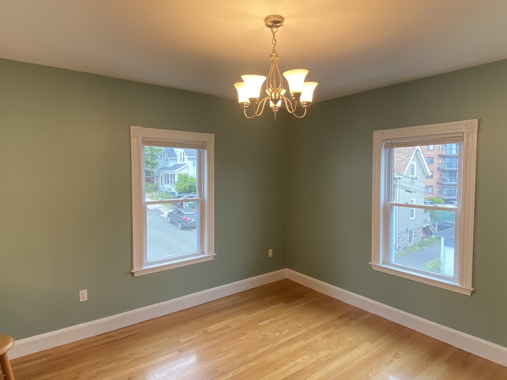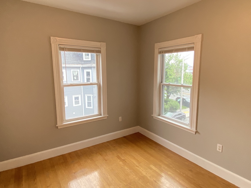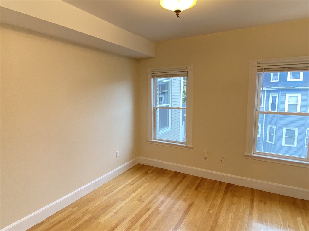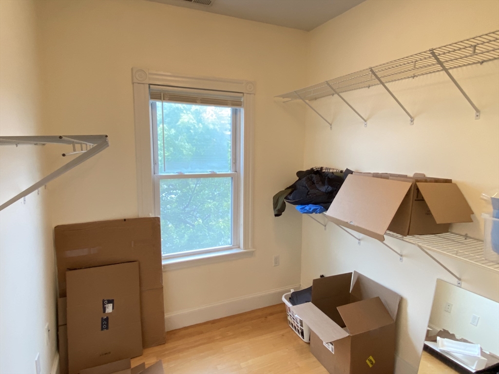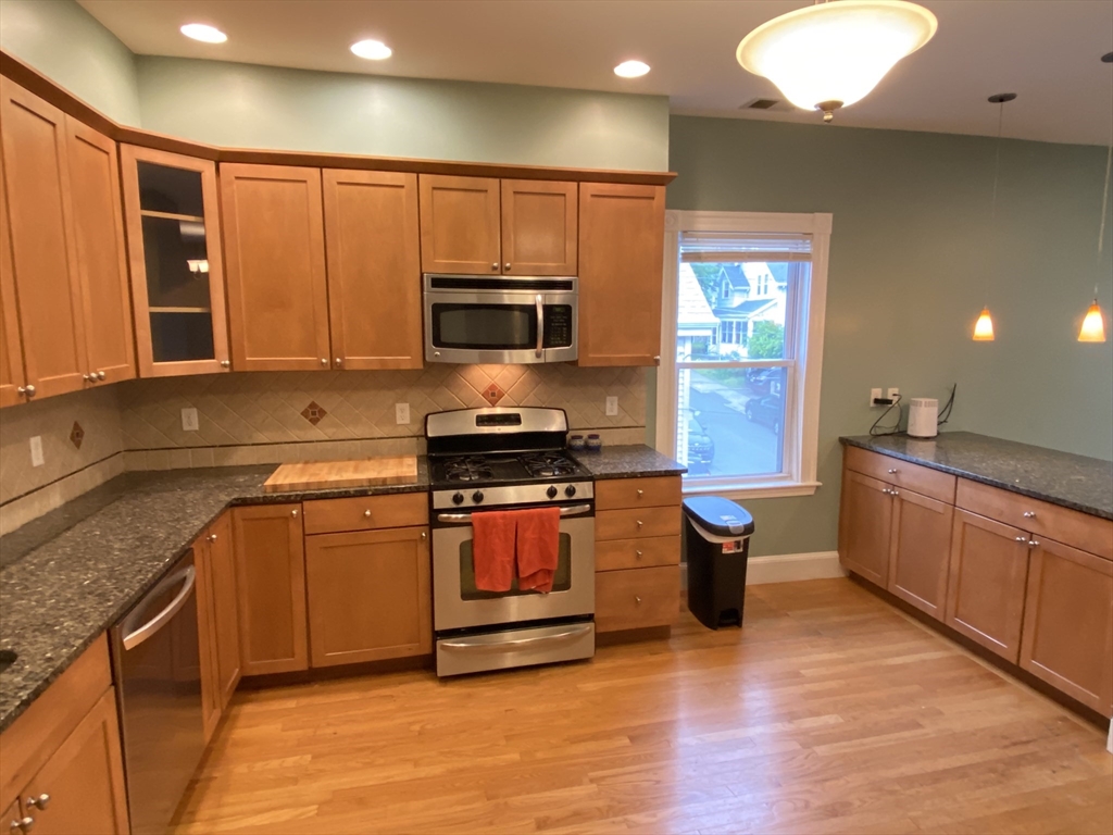 A wonderful opportunity to rent a four-bedroom, two bathroom, second and third floor half duplex condo in Medford. This is a fabulous value! A sun-filled living room with lovely Boston skyline views, and a large walk-in closet, are found at the front of the dwelling. This level also features three bedrooms with closets, both bathrooms, private staircases to a front a side door, and a well-proportioned kitchen with a breakfast bar opening into a dining room. The top floor offers another bedroom, den, office or recreation room and an enormous attic closet room. Hardwood floors throughout with new appliances, in-unit laundry and central air! One off-street parking space included. Ideally situated on a bus route and near restaurants, shops, the Malden Center orange line MBTA stop, and more. Don't miss it!