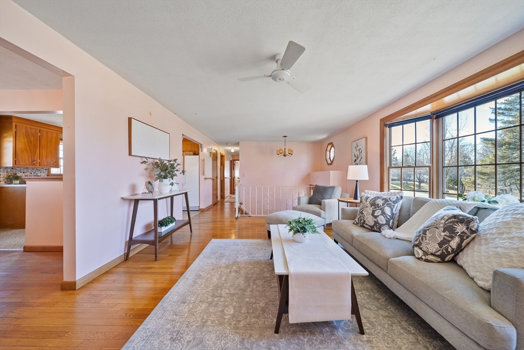Discover 321 Old Marsh Hill Road, where you will find this cherished home set on an incredible 1.24 acres with beautiful west-facing light and stunning sunsets.This inviting oversized raised ranch features hardwood floors throughout the first level, a bright living room with a large bay window and cozy fireplace, an eat-in kitchen, and a dedicated dining room. The private primary bedroom with half bath, two additional bedrooms, and a full bath complete the first floor. The fully finished lower level adds functional living space with a family room, an additional 3/4 bath, and direct walkout access to the 1-car garage. Enjoy the spacious backyard, relax on the deck, and take advantage of extra storage in the large shed. Municipal water/sewer, natural gas heat, and a perfect commuter location near Rtes 38, 110 & 93 — plus golf courses, Four Oaks Country Club, farm stands, and quick access to tax-free NH, this is a must-see home. Showings begin at the Open House on Sat, Dec 6 11-12:30PM.