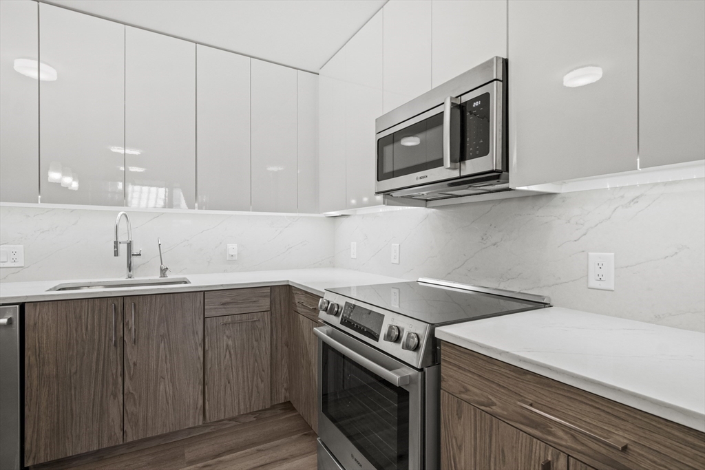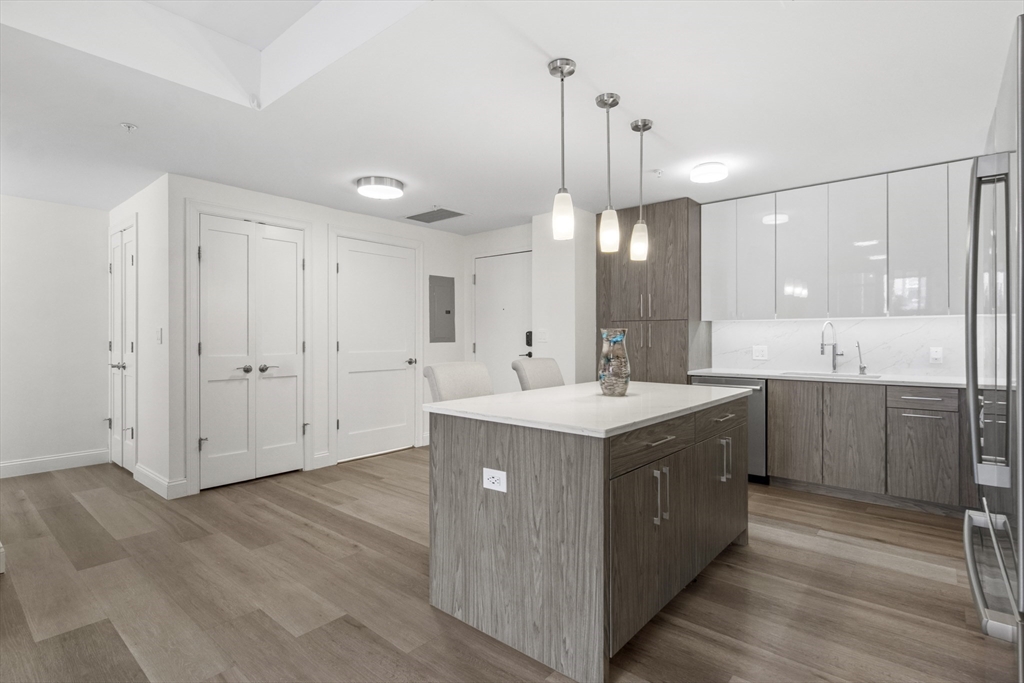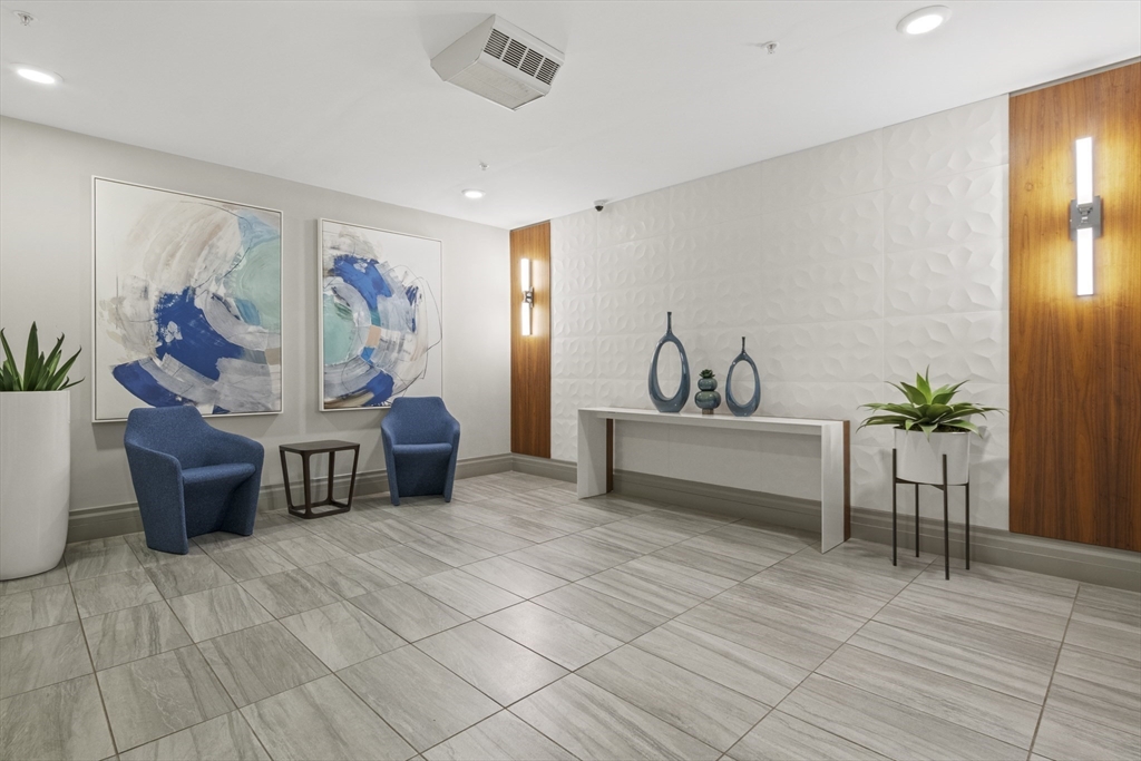Welcome to the Cosmopolitan- nestled in Boston's energetic south end! Being a resident at the Cosmopolitan, not only do you have an onsite attendant greeting you at the door but is handicap accessible, has a private gym & outdoor garden. Enter through the main entrance, where you'll find the attendant desk where all major packages can be received. Make your way down the hallway to the smaller lobby which you will take the elevator to the third floor. Enter unit 304 where you will find open concept living, high ceilings, & natural light beaming through the large windows. The modern kitchen has ample cabinet space, stainless steel appliances & spacious kitchen island perfect for entertaining. Step out onto your private balcony off of the living room to enjoy your morning coffee. Condo has two carpeted bedrooms, both with ensuite bathrooms. Primary bedroom is larger in size. has its own private balcony as well as a custom walk in closet! The only thing you need to do is just move in!