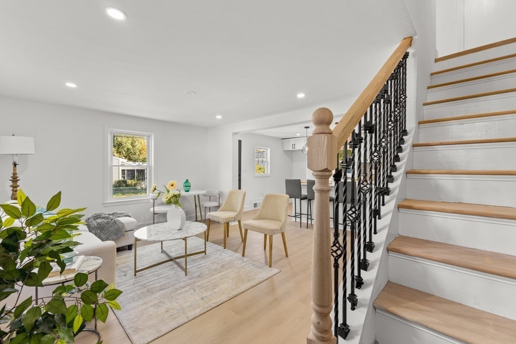 Welcome to your modern and updated home on a corner lot! This beautifully refreshed home features a bright and inviting interior with a sleek kitchen offering white shaker soft-close cabinets, brand new appliances, quartz countertops, and peninsula for gathering and conversations. Cozy living room bringing in lots of natural light, recessed lighting, updated 100 AMPS electrical panel, new plumbing, and luxury vinyl flooring throughout. 2 bedrooms are offered on the first floor and 2 bedrooms on the 2nd floor. The updated bathroom is beautifully tiled with sleek black finishes. The partially finished basement offers additional space for entertaining. Located in a prime Attleboro neighborhood which is minutes from Downtown shops, restaurants, the commuter rail station, parks, and schools. Not to mention easy access to the highway I-95, Routes 1 and 123. Move right in and enjoy the perfect blend of comfort, style, and location.