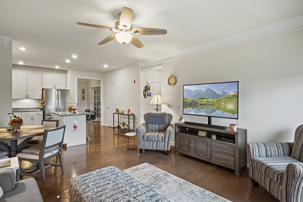 This unit includes covered GARAGE PARKING plus a Storage unit, a valuable perk! Enjoy a luxurious low maintenance home and with the BEST VALUE in this 55+ adult community at Chauncy Lake! Inside, you’ll find an open-concept layout with hardwood floors, high ceilings, and a private balcony that brings in abundant natural light. The kitchen features granite countertops, stainless steel appliances, and a generous island perfect for casual dining or entertaining. A flexible bonus room expands your options - use it as a guest room, office, or hobby space. The bedroom includes a walk-in closet, and the modern bath completes the home’s comfortable design. Ideally situated with easy access to the clubhouse and the scenic walking trails surrounding Chauncy Lake, it offers effortless access to fitness, social gatherings, and serene outdoor spaces. Combined with Del Webb’s standout amenities, pool, fitness center, courts, and a vibrant calendar of community events, this home truly has it all!