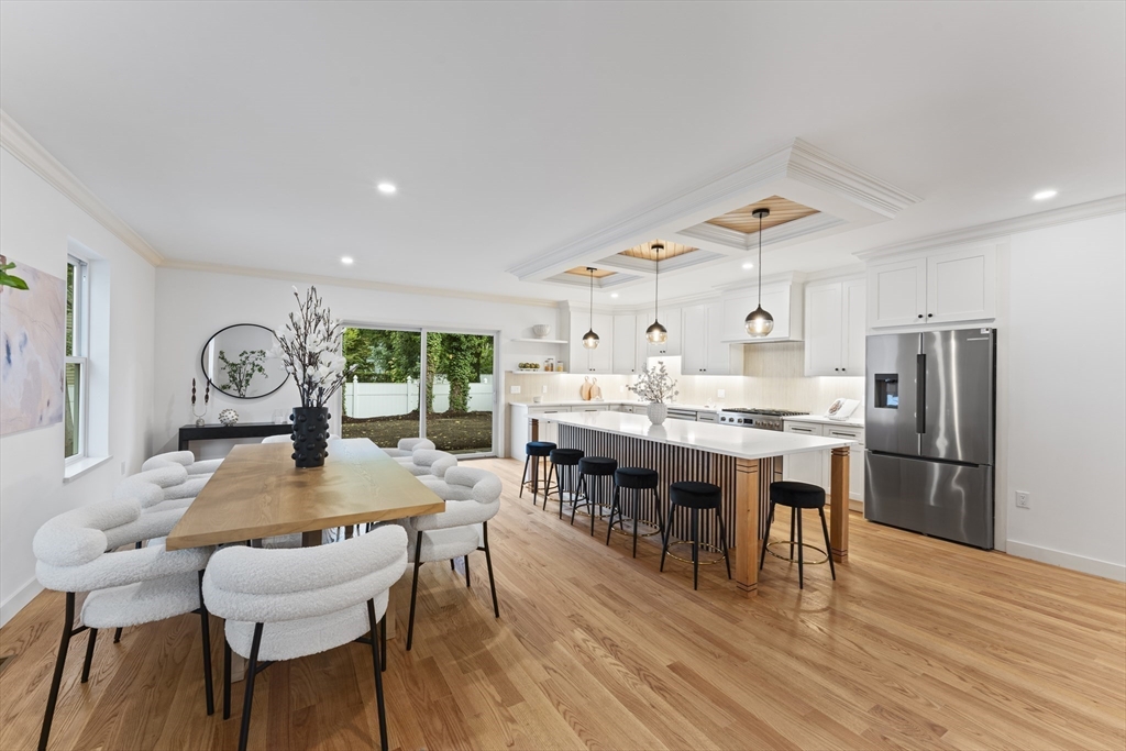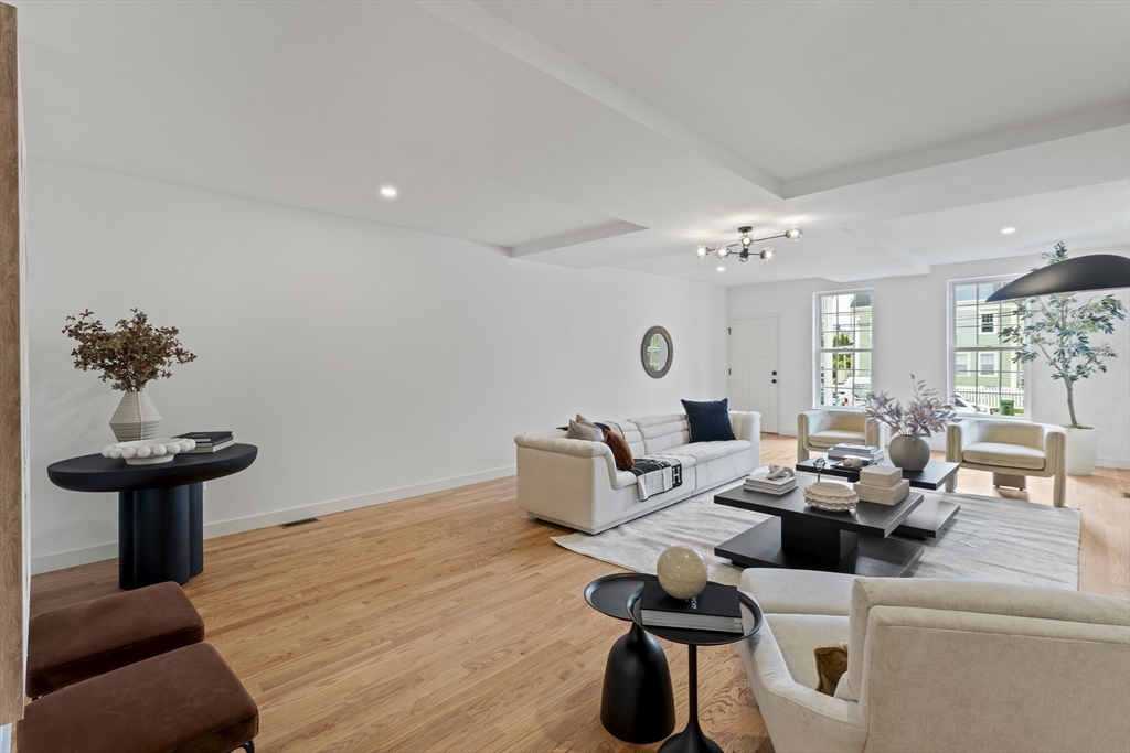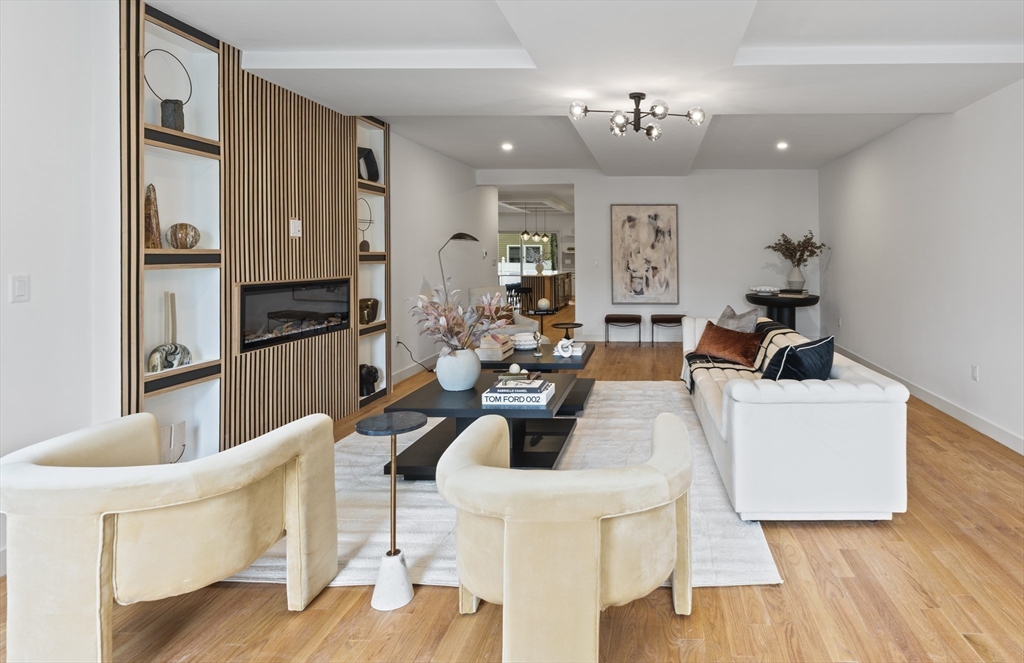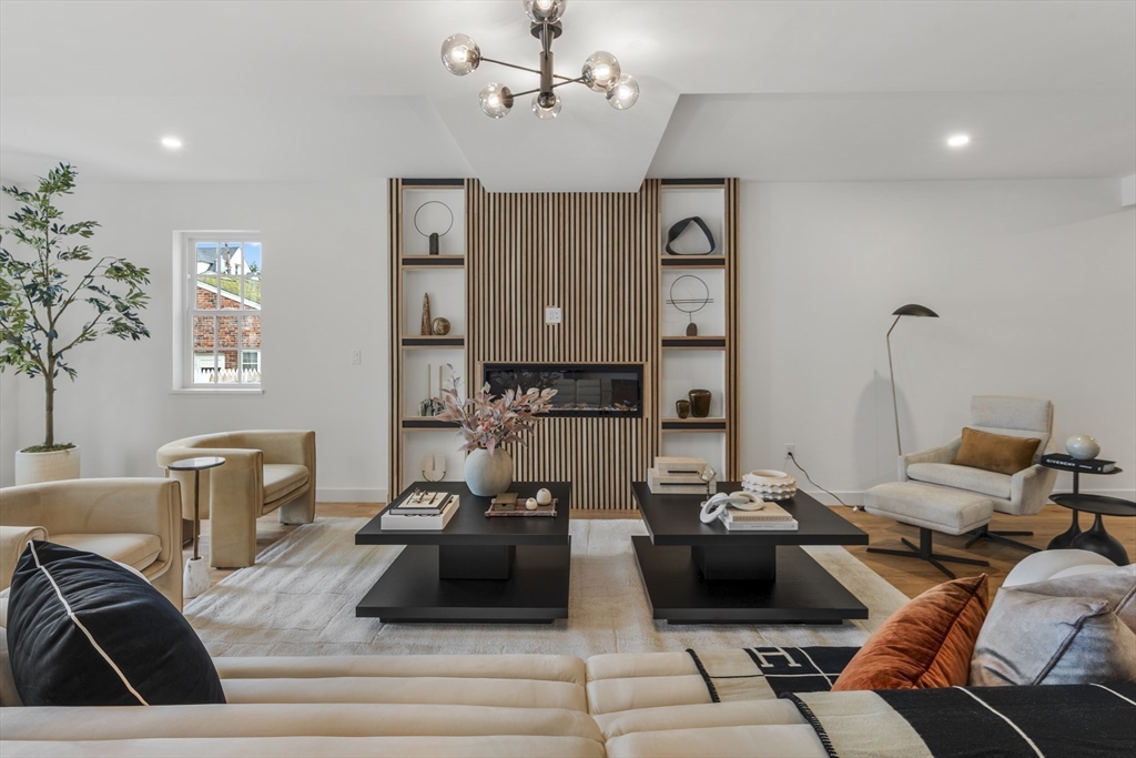 Introducing Residence 2 at 21 Fayette Street, a newly built luxury townhouse offering 4,103 sq. ft. across three levels. This 5-bedroom, 5-bath home includes a versatile first-floor suite, open-concept living with custom ceiling details, a statement fireplace, and a chef’s kitchen with custom cabinetry, oversized island, and premium appliances. Upstairs, spacious bedrooms feature ample closets and spa-like baths, while the finished lower level provides flexible space for a guest room, gym, media, or playroom. High ceilings, designer finishes, and a third-level laundry add convenience and style. Exterior highlights include a private fenced backyard and 3 parking spaces. Located minutes from Watertown Square, Arsenal Yards, the Charles River, and commuter routes, this home blends city access with neighborhood charm—a rare chance to own new construction in Greater Boston.