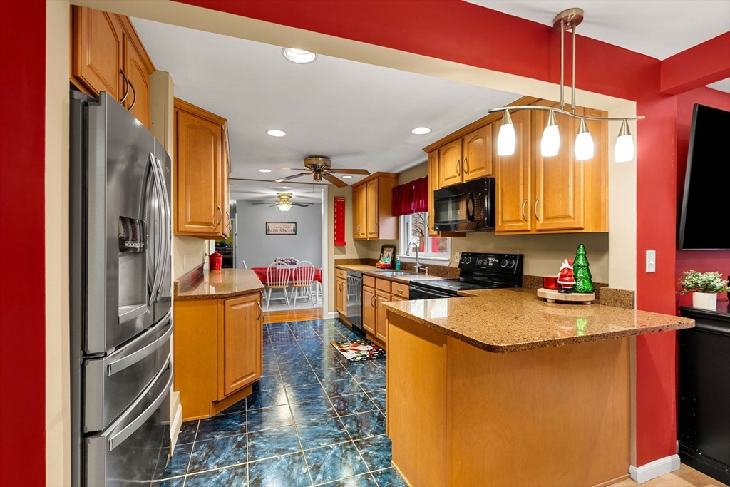 This is the one…look no more! Perfect family home. Well-maintained ranch in very desirable neighborhood. First floor has 4 bedrooms (one being used as a dressing room). Features include updated kitchen with granite counters with breakfast bar & maple cabinets, fireplaced formal living room, dining area with slider to spacious deck great for entertaining, skylit family room with pantry/closet and cathedral ceilings with access to backyard. Fully finished lower level with bonus room, man cave/bar, closet/office and full bath. Pull-down attic with generous storage. Large fenced-in yard, storage shed, vinyl siding, updated windows, roof, electric. Driveway big enough for four vehicles. Great home for family entertaining. Come check it out!