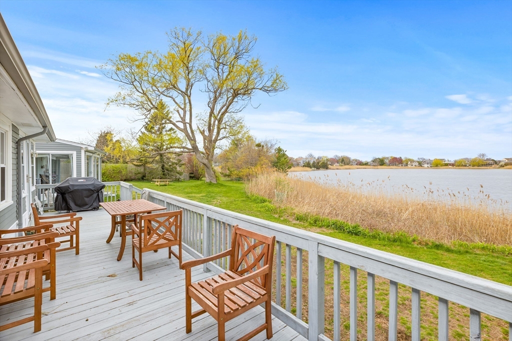 Fabulous WATERFRONT home on picturesque Musquashicut Pond.Tucked away at the end of a quiet cul-de-sac, this charming one level home offers rare privacy paired with sweeping water views.Launch your kayak or canoe directly from your backyard & enjoy stunning sunsets,peaceful mornings, & an ever-changing display of local wildlife.Inside the home welcomes you with a spacious cathedral ceiling living room featuring a cozy gas fireplace with adjoining dining room.The home includes three generously sized bedrooms & a bright three-season sunroom, an ideal spot to unwind & soak in the water views year round. A sizeable 14x10 storage room and additional utility shed give you plenty of extra space. The expansive private flat backyard and oversized deck allow for peaceful outdoor relaxation and entertaining. A bonus one car attached garage completes the package. Whether you’re seeking your next home or transitioning this property delivers a unique opportunity to reset in a breathtaking setting.