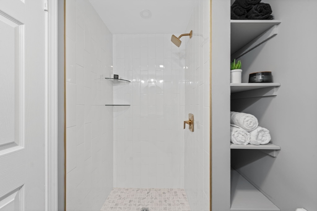 WOW!!! Classic New England Colonial where timeless architecture meets modern elegance. Located in one of Dedham’s most coveted neighborhoods, this newly renovated 4 bed, 3 bath home offers nearly 2,000 sq ft of thoughtfully designed living. The stunning chef’s kitchen features waterfall quartz countertops, a matching quartz backsplash, stainless steel appliances, and chic gold hardware, opening to a flexible dining or lounge area ideal for open concept living. A large sunken living room adds a luxurious custom touch.The first floor offers a primary suite, perfect to separate kids and adults. The second floor offers three large bedrooms with another Primary en-suite option and an additional updated bathroom. Updates include refinished hardwood floors, recessed lighting, new energy-efficient windows, New hot water tank, all new plumbing and electrical, all new paint. There is a large two-car garage, and enormous unfinished basement with potential for future expansion. This won't last!