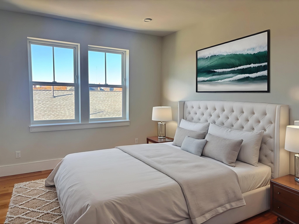 Welcome to The Doherty West Medford. This boutique 9-unit condo complex is designed for modern living, offering stylish residences with premium finishes throughout. This exceptional 2 bed, 2.5 bath two-level residence has two private decks, one covered on the main level PLUS a private 20' rooftop deck. The cutting edge kitchen highlights contemporary slab cabinets, chrome hardware, Samsung appliances including refrigerator with touchscreen, induction range, beverage cooler, and center island accented by a sophisticated hanging hood. A ground level coffee shop brings convenience to your doorstep, plus one deeded parking spot with designated EV Charger. Nestled in a prime location just 0.1 miles from the West Medford MBTA station, enjoy convenient access to public transit, as well as local restaurants, shops, and parks. With major routes nearby, easily commute into Boston and the surrounding communities. Area amenities include The Middlesex Fells Reservation and Tufts.