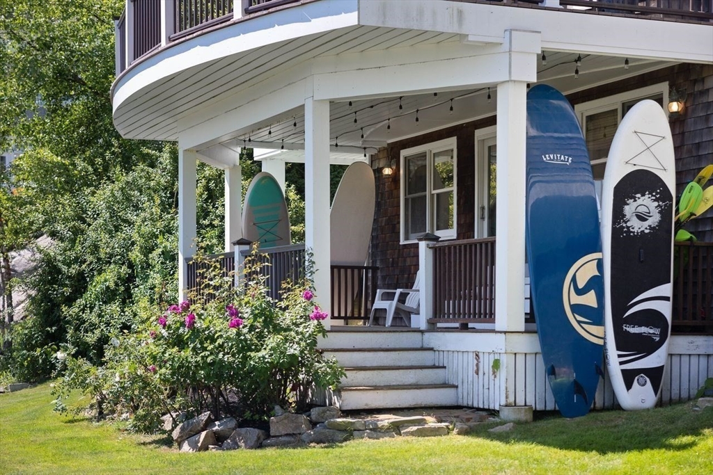 Stunning Little Harbor waterfront home with panoramic views from every room. Fully renovated, this custom Nantucket shingle-style home offers an open floor plan that flows to exceptional outdoor spaces. The gorgeous kitchen features honed Calacatta marble, stainless appliances, and a large picture window framing unobstructed water views. The living room with wood-burning fireplace and shiplap opens through French doors to a maintenance-free deck. The luxurious main suite includes double walk-in closets, a private balcony, and a spa-like bath. Three additional bedrooms—one en-suite—each enjoy spectacular 180-degree views, plus a sitting room on the second floor. The third-floor exercise room provides amazing vistas from your Peloton. A walkout lower-level family room with full bath offers ideal guest, in-law, or au pair space. Kayak, paddleboard, or boat from your backyard and enjoy the ultimate coastal lifestyle!