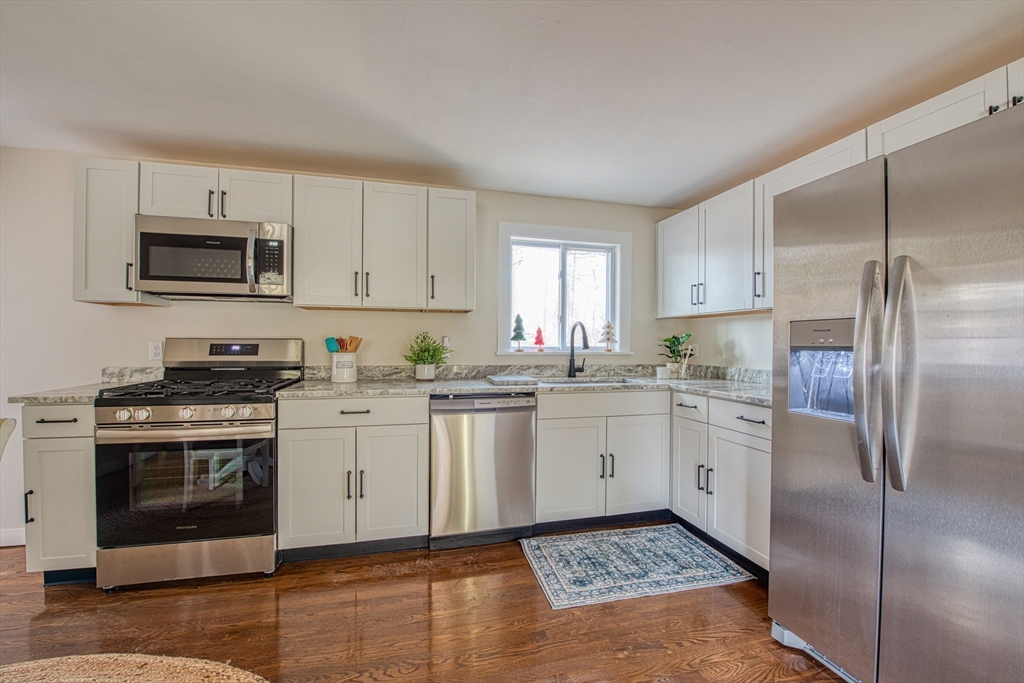 OPEN HOUSE SATURDAY & SUNDAY 1-2:30pm! Located on a quiet dead-end street, this charming 3-bedroom ranch offers true one-level living at its finest and is completely move-in ready. Thoughtfully updated with modern features, this home is perfect for buyers looking for a starter home or to downsize. Step inside to find hardwood floors throughout, a bright kitchen with a dining area, stainless steel appliances, upgraded cabinets, and beautiful granite countertops. Fresh interior paint adds a clean and welcoming feel to every room. The home also features a full basement, ideal for future expansion, a workshop, or additional storage. Enjoy year-round comfort with gas heat and central A/C, along with city water & sewer. Recent updates include a new roof, water heater, windows vinyl siding, heating system and updated electrical.