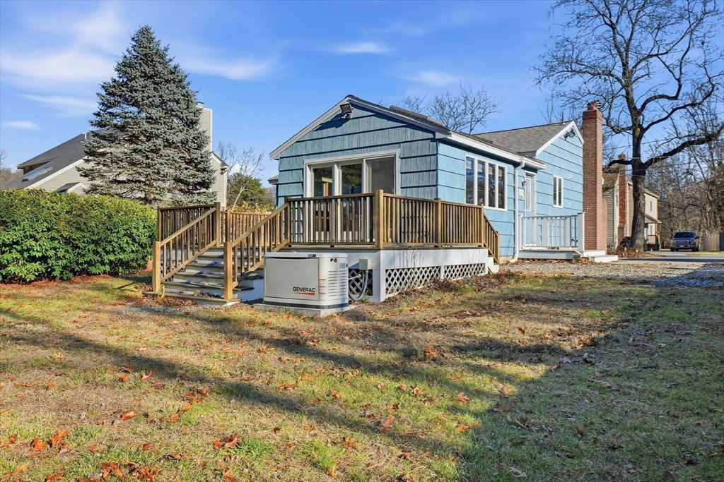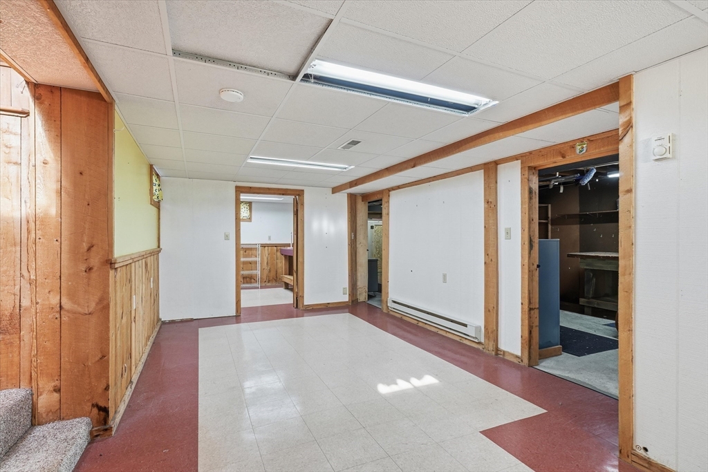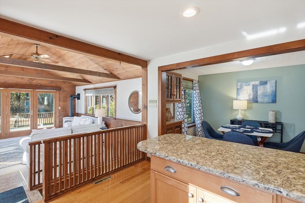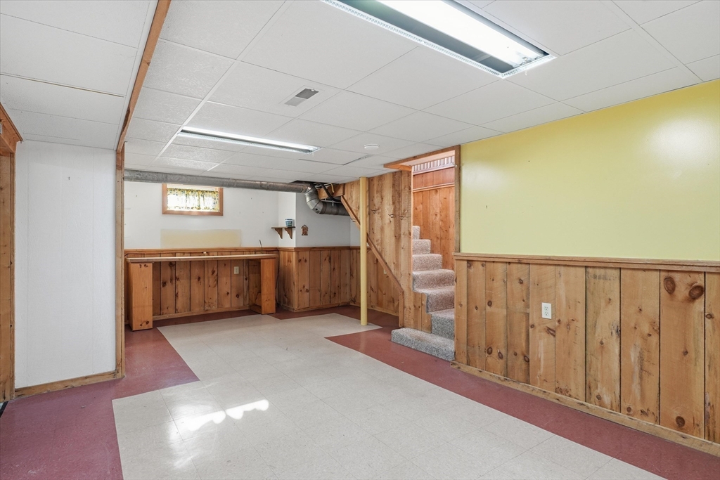 Welcome to this charming six-room open-concept ranch set in a lovely cul-de-sac neighborhood. The heart of the home is the stunning 14'9" x 19' pine-clad cathedral family room, complete with abundant natural light and a warm, inviting feel—perfectly open to the kitchen and dining area for easy everyday living and entertaining. A versatile living room or formal dining room with a fireplace offers additional gathering space. The home features two bedrooms with hardwood floors and a full bath with shower. Step outside for easy access to a large, flat yard, ideal for recreation, gardening, or relaxing. The spacious double driveway accommodates at least 4 vehicles comfortably. Additional highlights include: Brand-new 3-bedroom septic system design in process. Seller to escrow funds if needed for installation at closing. 11kW gas generator, Central A/C. Wood stove in family room. Gas heat and cooking. Finished room in the basement with electric heat. Dedicated laundry room.