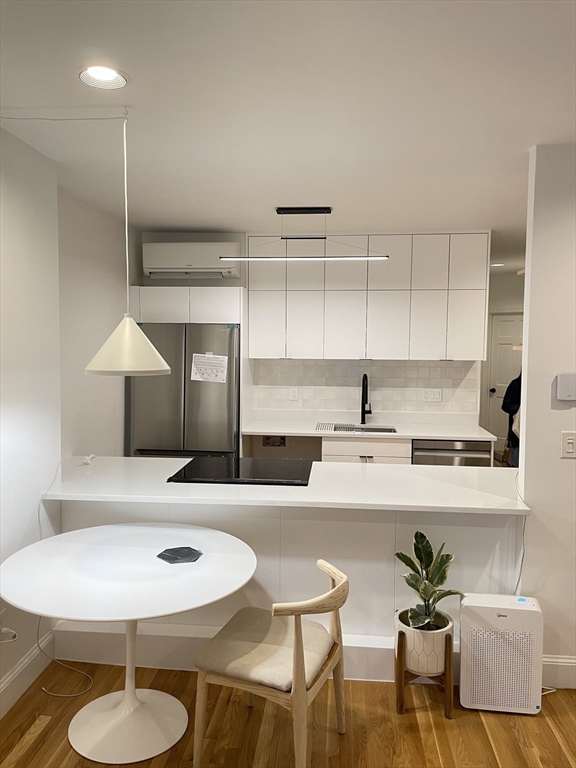 This street level 2-bedroom unit offers bright, convenient city living with semi-private entry and no stairs to navigate. Bow windows at the front and back bring natural light throughout the living space, highlighting custom built-ins and original architectural details. The newly renovated modern kitchen featuring stainless-steel appliances, sleek cabinetry, and quartz countertops with ample prep space, overlooks and opens directly into the living area, creating an open concept feel. Additional features include mini-split heating and cooling, in-unit washer/dryer, and an updated bathroom with radiant-heat floors. Both bedrooms offer hardwood floors and custom closet space, equipped with premium, fully customizable storage systems. A private deck sits just off the second bedroom. Note: Photos are from a previous listing and do not reflect the current owner’s furnishings.