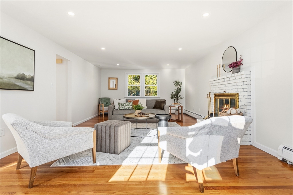 Welcome home to this beautiful center entrance Garrison Colonial located in one of the most desirable areas of Saugus—Indian Valley. Nestled on a spacious 10,000 square foot lot, this residence offers ample outdoor space for relaxation and recreation. This home features four generous bedrooms, providing plenty of space for family members and guests alike. Two full, updated bathrooms ensure that comfort and convenience are available for all residents.The open concept kitchen and dining area is thoughtfully designed to delight even the most enthusiastic chef. Fine details such as gold hardware and waterfall quartz counter make this kitchen a standout. Gleaming hardwood floors extend throughout the home, reflecting sunlight that streams through all new insulated windows. This combination creates a bright and welcoming atmosphere in every room. All new central air conditioning compliments the heating and electrical systems which are in excellent condition. Garage, deck + oversized shed
