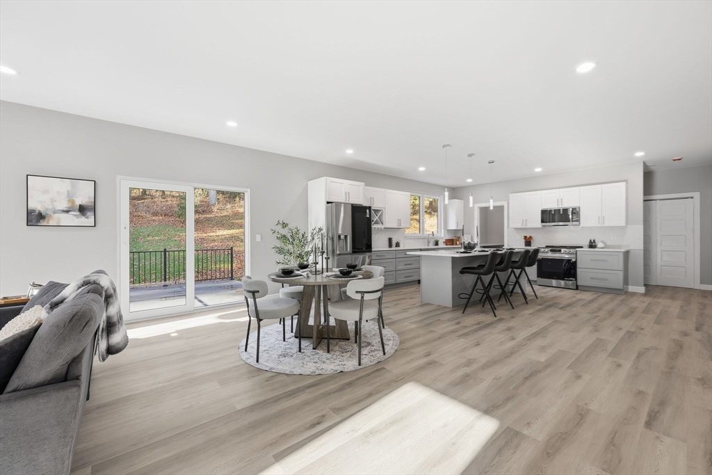 Introducing a striking new construction residence that blends bold architecture with refined design. Positioned on a lot framed by mature trees, this home makes a commanding first impression with its clean lines, dramatic contrast, & oversized 2 car garage. The grand foyer opens to an expansive living space defined by floor to ceiling style. A sleek gas fireplace anchors the room, surrounded by panoramic windows that draw in natural light. The seamless flow leads to an exceptional kitchen crafted w/ quartz surfaces, custom cabinetry, wine storage, a custom pantry & an island designed for elevated hosting. The second level features a standout primary suite w/ an expansive walk in closet, a beautifully finished spa like bath along w/ two additional bedrooms. A first floor office or potential 4th bedroom, dedicated laundry area & sliders leading to a deck overlooking a private yard. Located just minutes from Ashley Reservoir and major highways, a polished turn key home ready for you.