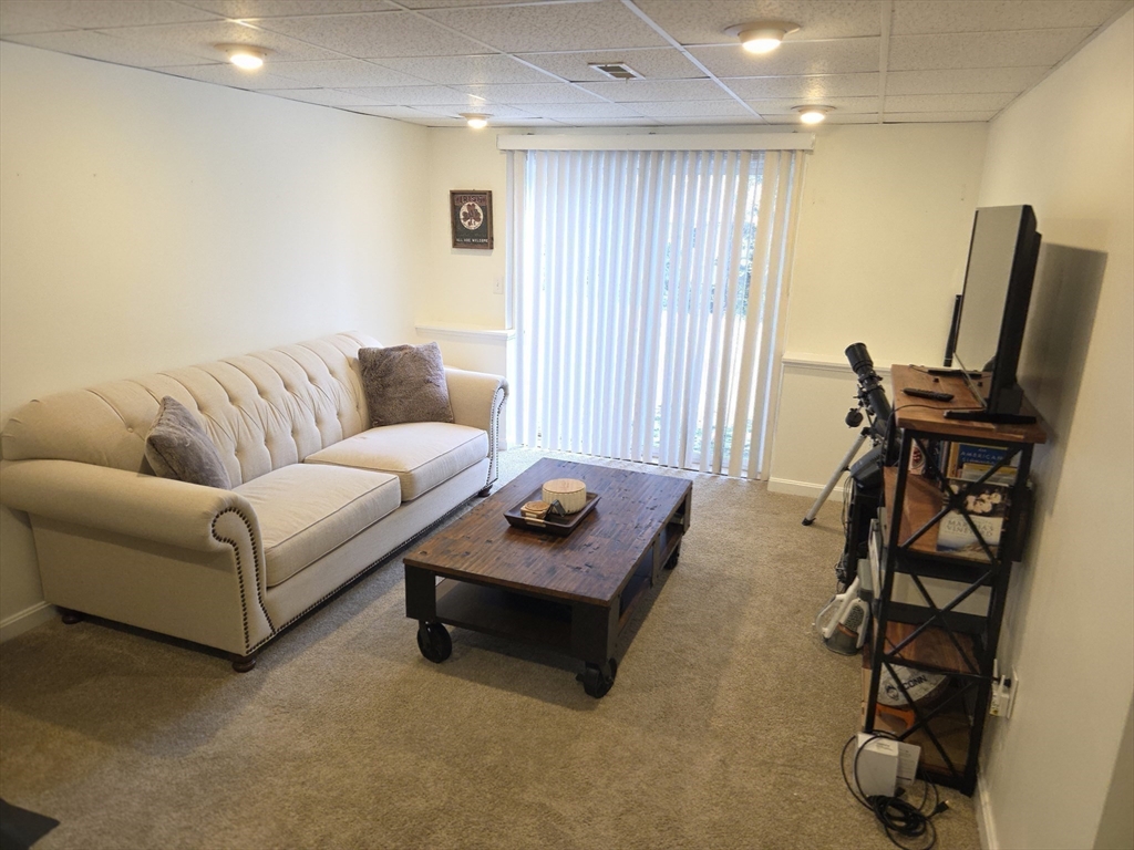 Excellent location for this well cared for end unit in Bruce Hollow II. Adjacent to a common parking lot. Deck overlooking nice back yard area. Current owner replaced the hot water heater, dishwasher, oven/stove, & refrigerator. Current owner also upgraded flooring in the main living area upstairs and both upstairs bedrooms. Entry foyer with slate flooring and coat closet. Main floor has a living room w/vaulted ceiling, fireplace, two skylights. Formal dining w/pass-thru to kitchen. Master bedroom w/vaulted ceiling and entry to main bath. Second bedroom with sliding glass door to deck (composite decking, vinyl rails and balusters). Finished basement with full bath (shower stall), family room and third bedroom. Garage under. This is a very well-run complex. Close to Grafton's historic town center. Minutes to Pike, Train, 495. Grocery store w/in 2 miles