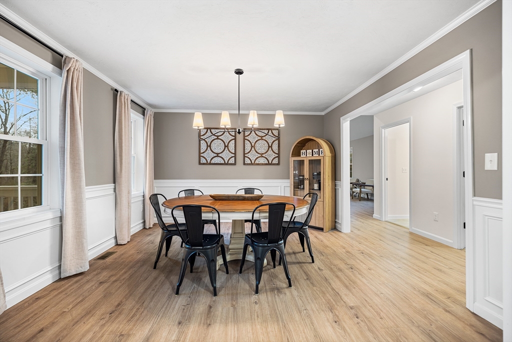 Experience the exceptional quality of this nearly-new construction home, built with discerning custom features and basking in natural light from abundant windows. The open-concept living area features a dramatic vaulted ceiling, complemented by an elegant formal dining room adorned with wainscoting and crown molding. The gourmet kitchen boasts custom cabinets, sleek quartz countertops, and a convenient gas line hookup (currently capped for electric cooking) for the chef's preference. Comfort is paramount with a cozy propane fireplace, a main-floor laundry room, and double sinks in both upstairs bathrooms. Storage is a dream, as the primary suite and two additional bedrooms each feature walk-in closets. For future expansion, the walk-out basement is already plumbed for a full bathroom, and exterior amenities include a low-maintenance deck, a fully fenced backyard, and a handy generator plug for peace of mind.
