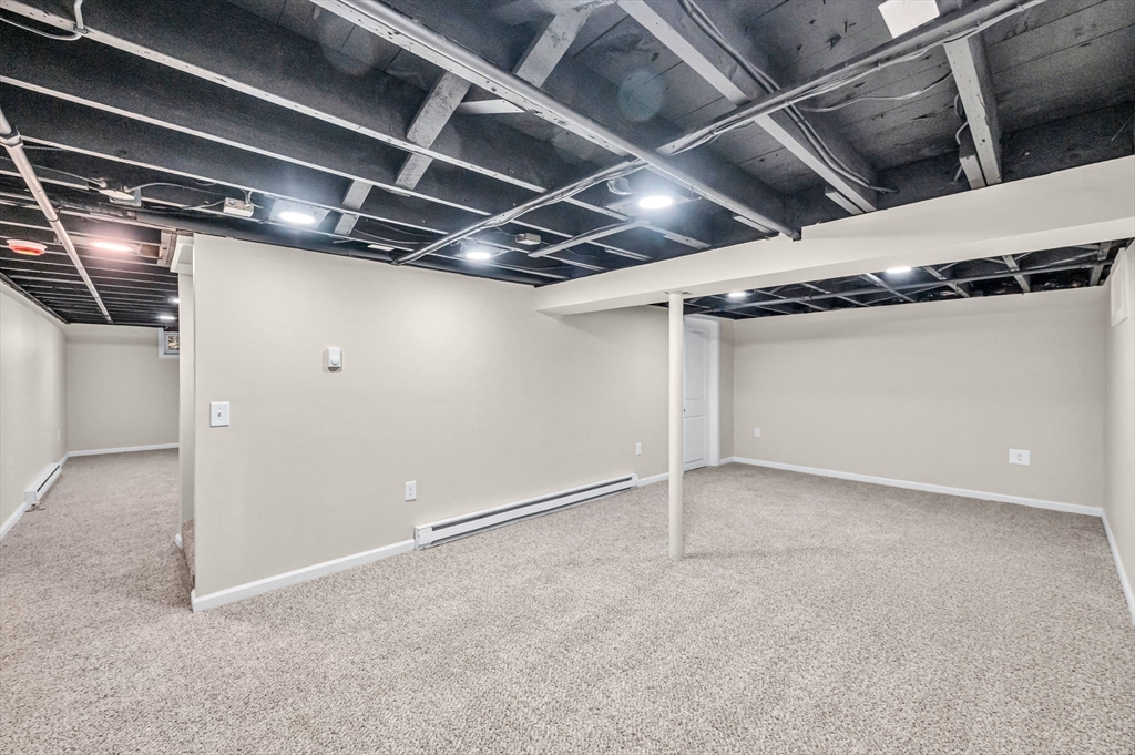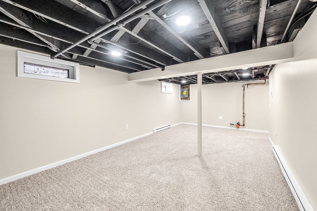 Welcome to this beautifully remodeled 4-bedroom, 2-bath Cape, offering modern comfort and stylish updates throughout. Discover a bright, open layout featuring refinished hardwood floors and a stunning kitchen equipped with brand-new stainless steel appliances, shaker cabinets, gleaming quartz countertops, and classy backsplash. Two bedrooms are conveniently located on the first floor, providing flexible living arrangements, and the two upstairs bedrooms offer great closet space. The awesome finished basement provides fantastic additional living space—perfect for a family room, home office, or play area—and includes a remodeled laundry room for added convenience. This home also features low-maintenance vinyl siding, vinyl windows, a new hot water heater, and updated plumbing and electrical throughout. Outside, enjoy a partially fenced-in yard that offers both privacy and room to entertain. With its thoughtful updates and inviting spaces, this home is truly move-in ready.