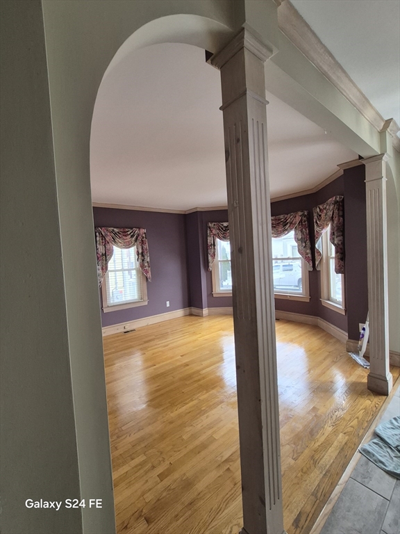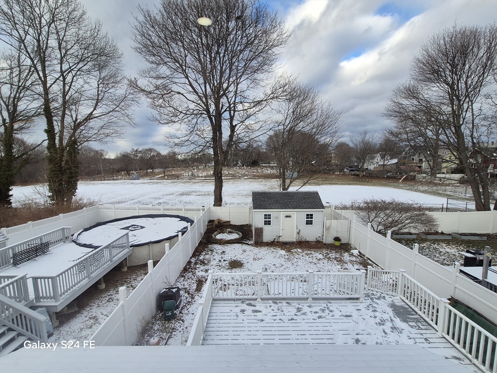 Small city living in Central Gloucester. This one checks many boxes. Just a few blocks away from the MBTA w/service to Beverly ,Salem and Boston. Enjoy the easy access to all of downtown .Blocks away from shopping, restaurants ,harbor, blvd.,bakery, coffee, and Main St.. This home offers off street parking . Easy care fenced in yard w/koi pond & sprinkler system. The perfect shed you have been dreaming of is here. Large deck. W/ bbq platform and grilling area.Come inside .Open archway into a sunny south facing livingroom. Formal dining room leads to deck. Open eat in cooks kitchen. Opening to dining for easy entertainment. Exterior side entry. First level tiled spa bath with radiant heat. Upstairs hold three bedrooms. Pull down attic access. Basement has laundry hook ups,office nook,open space flex room and private entrance w/ room water hook up. Must see inside to appreciate .