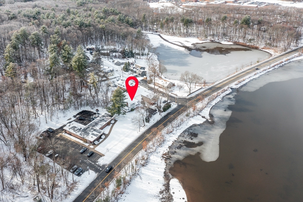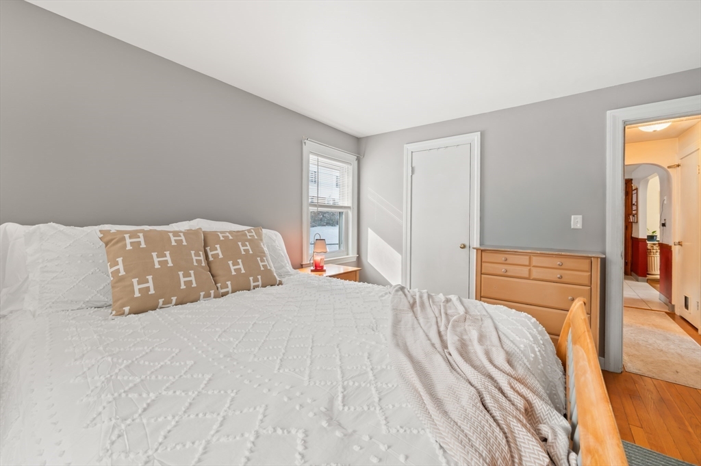 Reduced lower price,Welcome home to this charming 3-bedroom, 1.5-bath Colonial perfectly situated across the street from the lake, offering beautiful seasonal water views. Flooded with natural light, this home features gleaming hardwood floors throughout and a warm, inviting layout. The main level includes a spacious living room plus a wonderful additional window-lined bonus room—perfect as a home office, reading room, or even an extra guest bedroom. A walk-up attic in the second bedroom walk-in closet, provides excellent storage hidden away. The partially finished basement adds valuable extra space, including a cozy bedroom with its own fireplace, plus an additional open area that can easily be transformed into a second living room, gym, playroom, or hobby space. This back yard offers privacy and flexibility for outdoor enjoyment. With its classic charm, unbeatable location, and serene setting, this home is a rare opportunity to enjoy lakeside living in Massachusetts. Don’t miss it!
