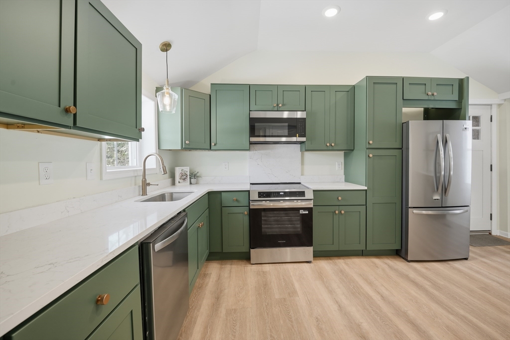 Welcome to 436 Holyoke Street, Ludlow MA, where this fully renovated farmhouse blends modern comfort with timeless charm on almost 3 acres of land. Step inside to sun drenched rooms and a flowing layout that includes a spacious dining room and two inviting living areas suited for gathering or unwinding. The stunning kitchen features quartz counters, stainless appliances, a coffee bar and convenient access to the first floor laundry. A main level bedroom offers great versatility for a home office, and a beautifully updated half bath sits just off the living space. Upstairs you’ll find three large bedrooms, a fully renovated bath and a flex room perfect for a nursery, office or walk in closet. This home has undergone improvements including new windows and doors, siding, gutters, garage doors, updated plumbing and electrical, a new furnace, central air, water heater and well, giving you peace of mind for years to come. You’ll want to call this house home, schedule a private tour today.