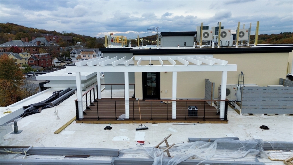 The Flagship PENTHOUSE home at Majestic Mill Brook, a luxury condo complex now complete and ready for occupancy January 2026. Low-emissions development with high-quality finishes and contemporary flair. This is the last and largest penthouse in the building. 2 bed, 2 bath residence with PRIVATE ROOF DECK with pergola. The stylish interiors feature 9ft ceilings, open concept living room, dining room and kitchen with electric range, exterior vented exhaust hood, and built-in microwave. Residents at Majestic enjoy a 2nd-floor courtyard, a 5th-floor roof deck, a ground level Urban Garden, and community fitness center. Enjoy everything the Arlington community has to offer, from the Minuteman Bikeway, only 0.2 miles from Majestic, to endless dining, shopping, and recreational activities. This unit comes with 1 deeded garage parking space, bicycle storage, and storage unit on lower level. Pet friendly community. Private EV chargers for all unit. Weekly Open Houses Thurs-Sat 11-2
