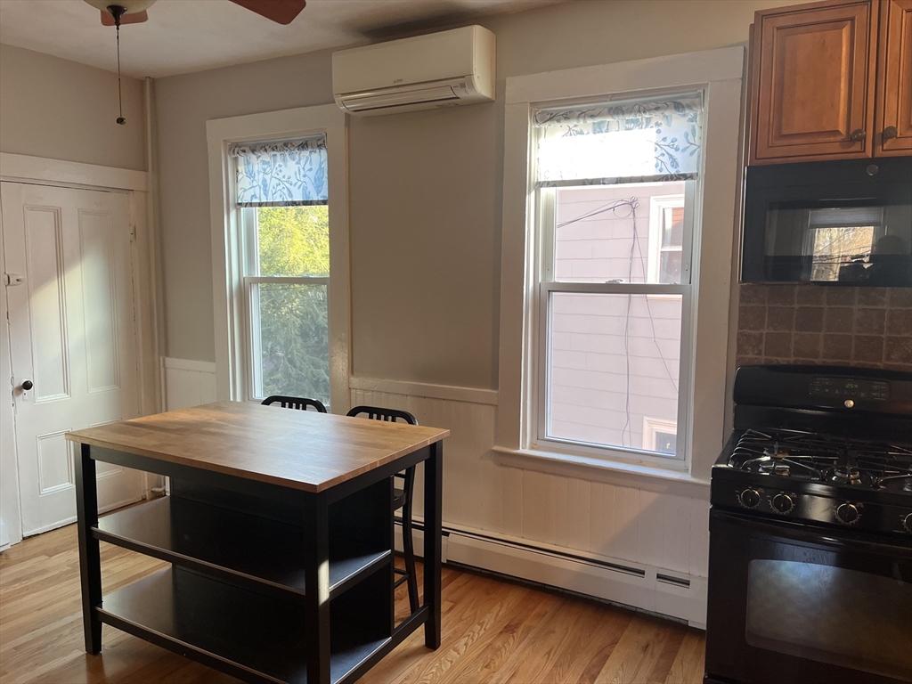 ****AVAILABLE NOW OR AS FAR OUT AS JANUARY 15*****Second Floor 2.5 bedroom 1 bathroom condo, located in the heart of Jamaica Plain - right off of Centre Street, and around the corner from the Arnold Arboretum. The sunny apartment features original Pine hardwood floors, an updated kitchen with modern appliances,ductless air conditioning, gas cooking, excellent storage/cabinet/ and counter space. Two Larger rooms, one smaller - can be used as either a two bed with office or three bedroom - whichever you prefer. In a quiet and secure building with on-street parking. Additional storage in unfinished basement, as well as alternate laundry machine (there is already one in-unit). Common backyard - great for the warmer months, for entertaining!