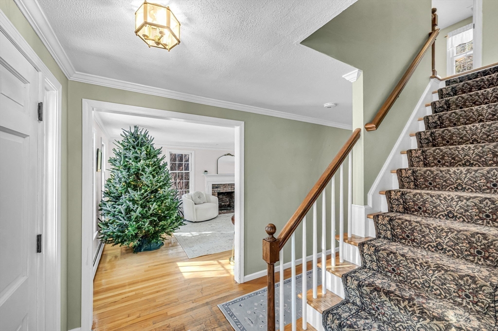 Your Dream Home for The Holidays! You will love this delightful Colonial, full of curb appeal & character, ideally set in a very desirable, picturesque Blueberry Hill neighborhood close to all schools, shops & restaurants! Warmth greets you in this bright, sun-filled home featuring an inviting layout, generous rooms, elegant crown moulding & hardwood floors throughout! The 1st floor includes a family room w/ skylight & gas fireplace, a remodeled kitchen w/ gas stove, white cabinetry & granite counters, a formal dining room w/ two built-in corner china cabinets, and a gracious front-to-back living room w/ cozy fireplace & picture window! The 2nd floor offers 4 spacious bedrooms & two beautifully updated baths & the basement has 2 heated, finished rooms for add’l living space! Outdoor enjoyment awaits on the screened-in porch overlooking a private, fenced yard. Additional features include a new roof (11/24), an attached 2 car garage, gas heat, central air & sprinkler system!