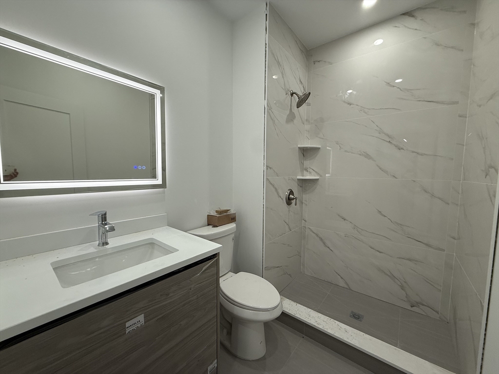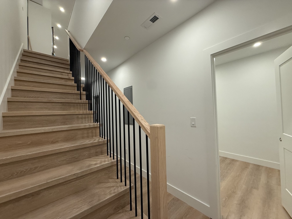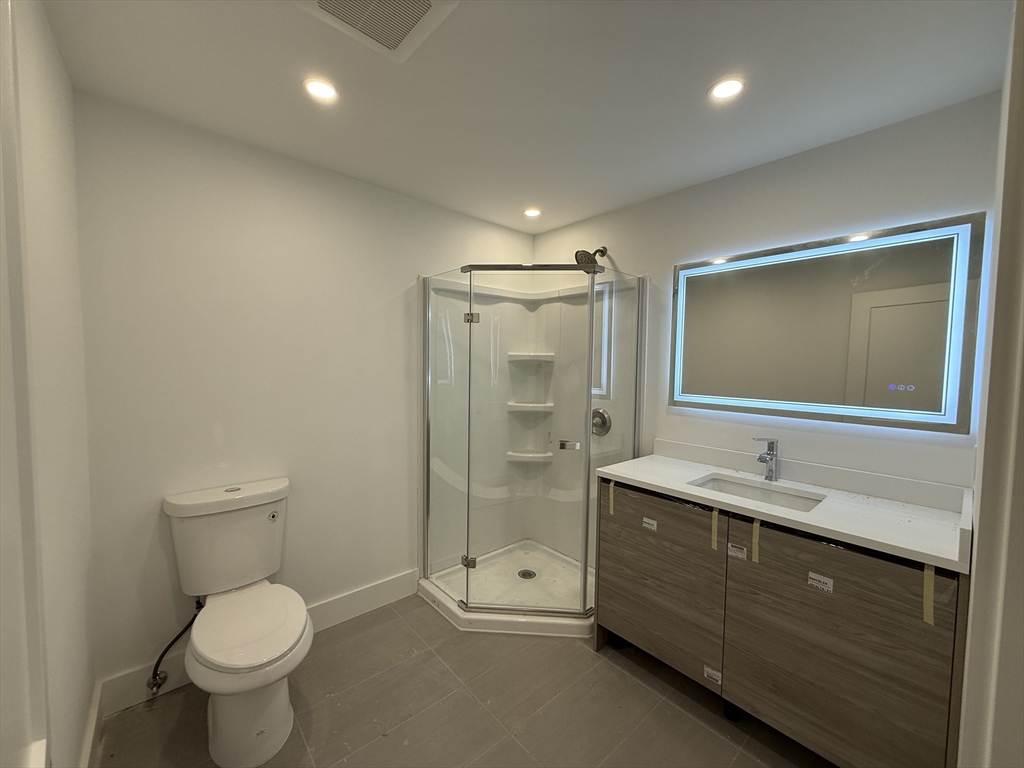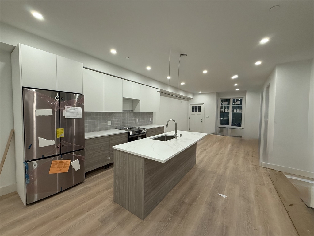 Stunning brand New (from the ground up) Construction in the very heart of Newton Centre! Be the very first to live in this spacious, airy apartment just one block from the “T” and steps to restaurants, shops, and entertainment. Features an open floor plan with recessed lighting and beautiful wood flooring throughout. The modern kitchen includes stainless steel appliances and ample cabinet space. Primary bedroom and full bathroom on the first floor; lower level offers two additional bedrooms, a full bath and second family room with fireplace—perfect for guests or a home office. Both bathrooms feature large, stylish showers. In-unit washer and dryer, central air (2 zones), generous storage, and assigned parking for one car. Prime location in the heart of Newton Centre. Easy to show! Available December 15th, 2025.