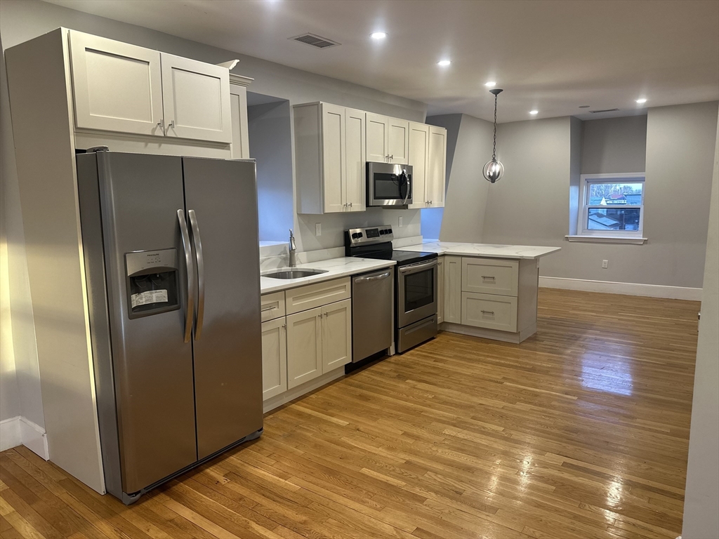 beautiul recently all renovated 2 beds 2 full baths ready for occupancy. unit features hardwood floors, gourmet kitchen with SS appliances, hardwood floors, large closets, washer and dryer machine in the unit. large bedrooms, unit comes with 2 parking spots and one spot for visitors . great location near shopping center, market basket , Petco and other fast chain restaurants unit will no last.