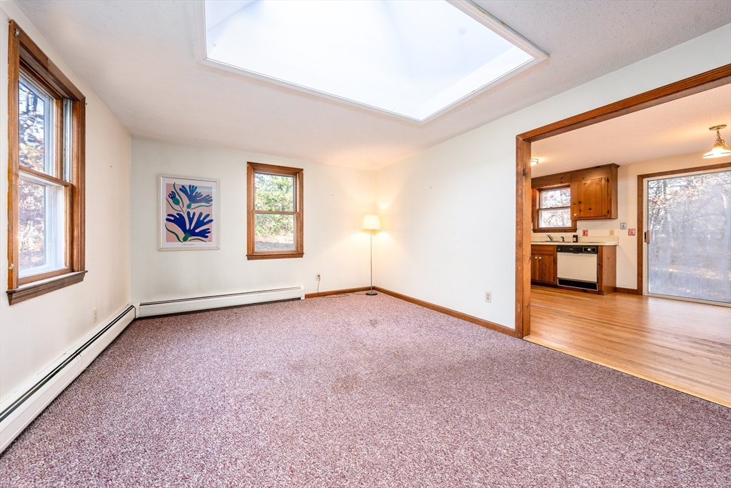 Quiet and delightful traditional Cape ranch nestled in the quiet side streets of Sandwich with additional .18 acre lot in Barnstable allowing access to beach and transfer station privilege in both Sandwich and Barnstable. Well maintained but ready for new owner to customize and make their own. Hardwoods in kitchen and dining room adjacent to living room flooded with natural light from skylight. 2 generous bedrooms with spacious closets and access to rear private balcony from slider. Step outside to discover a lovely backyard, ideal for outdoor activities, gardening, or simply unwinding in your private oasis. The full basement offers additional storage and potential for future expansion with walk out slider into rear yard. 4 Lan Rd embodies comfortable living in a serene setting, perfect for those seeking a charming residence in the heart of Sandwich. Don't miss the opportunity to make this delightful home your own!