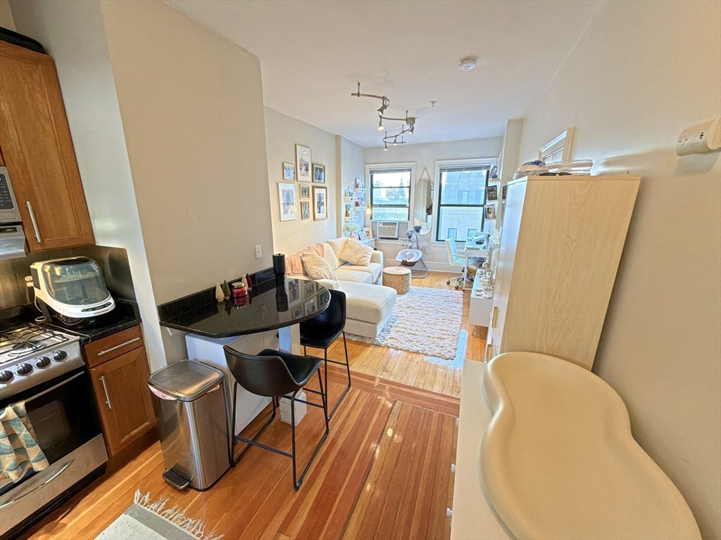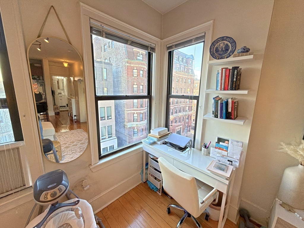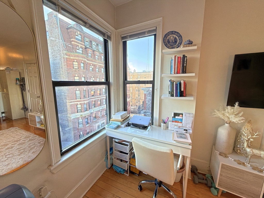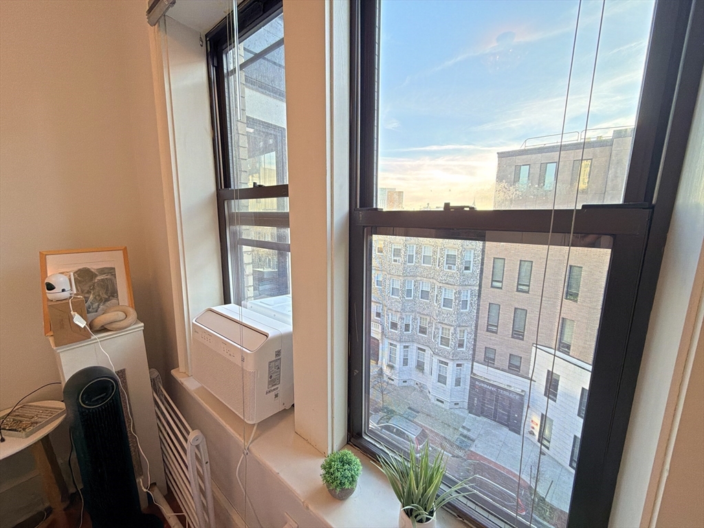 AVAILABLE JAN 1, 2026: Penthouse Perch with Sky Views & Spa Vibes - Welcome to The Sky Parlor! Perched on the top floor, this unique home offers a daily 5th-floor walk-up workout, that rewards you with sky views and soaring ceilings. Features 6 luminous windows, a dreamy 2-window corner desk nook framing pure sky. The culinary quarters feature gas cooking, stainless steel appliances, dishwasher, microwave, and a built-in dining area. Retreat to a spa-inspired bath with full marble walls and a deep jacuzzi-style tub. Located in the beating heart of the city: just 1 block to Whole Foods, 2 blocks to Symphony Hall & MBTA Subway Orange Line. Surrounded by the creative energy of Berklee, Boston Conservatory, MFA, Northeastern U, MassArt, and the borders of Back Bay/South End. Optional: Purchase existing furniture w/ lots of hidden storage, for a turnkey move. Common laundry in the building. Rent includes Heat/Hot Water - tenant just pays Elec. A classy gem for the spirited city dweller!