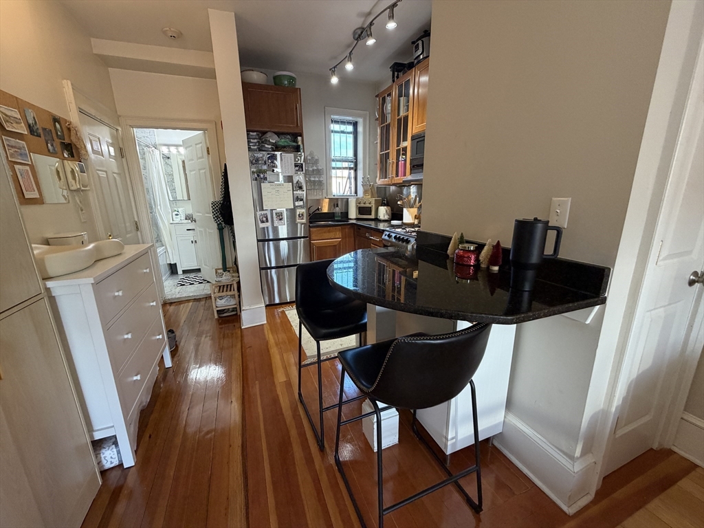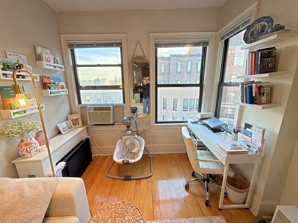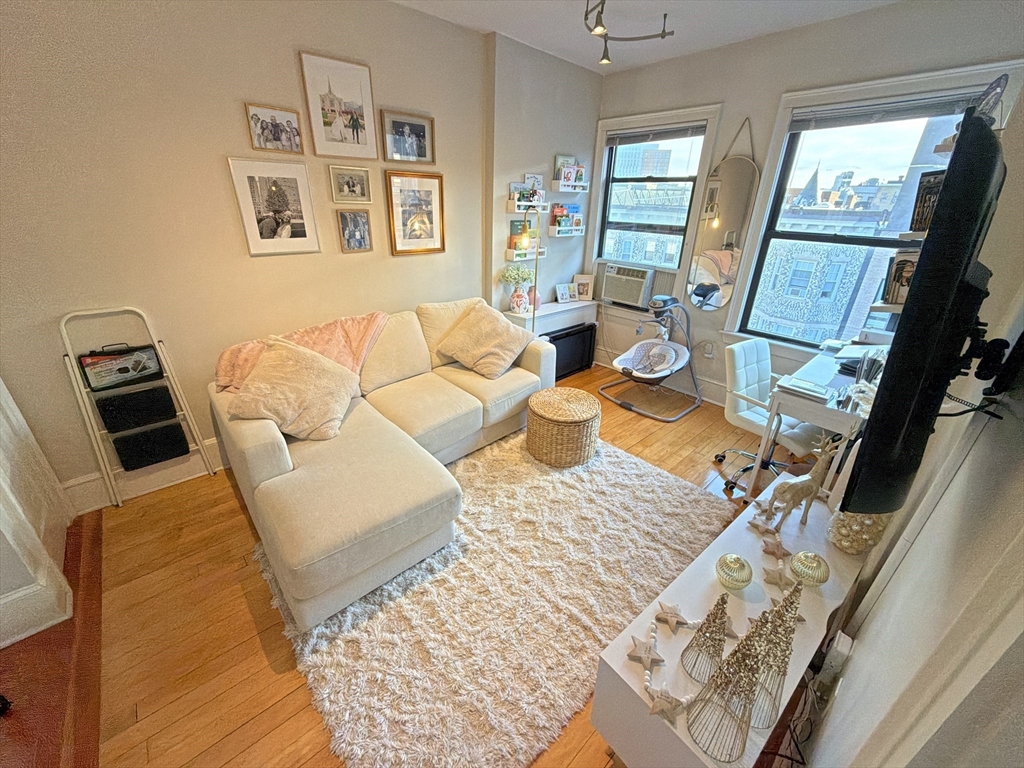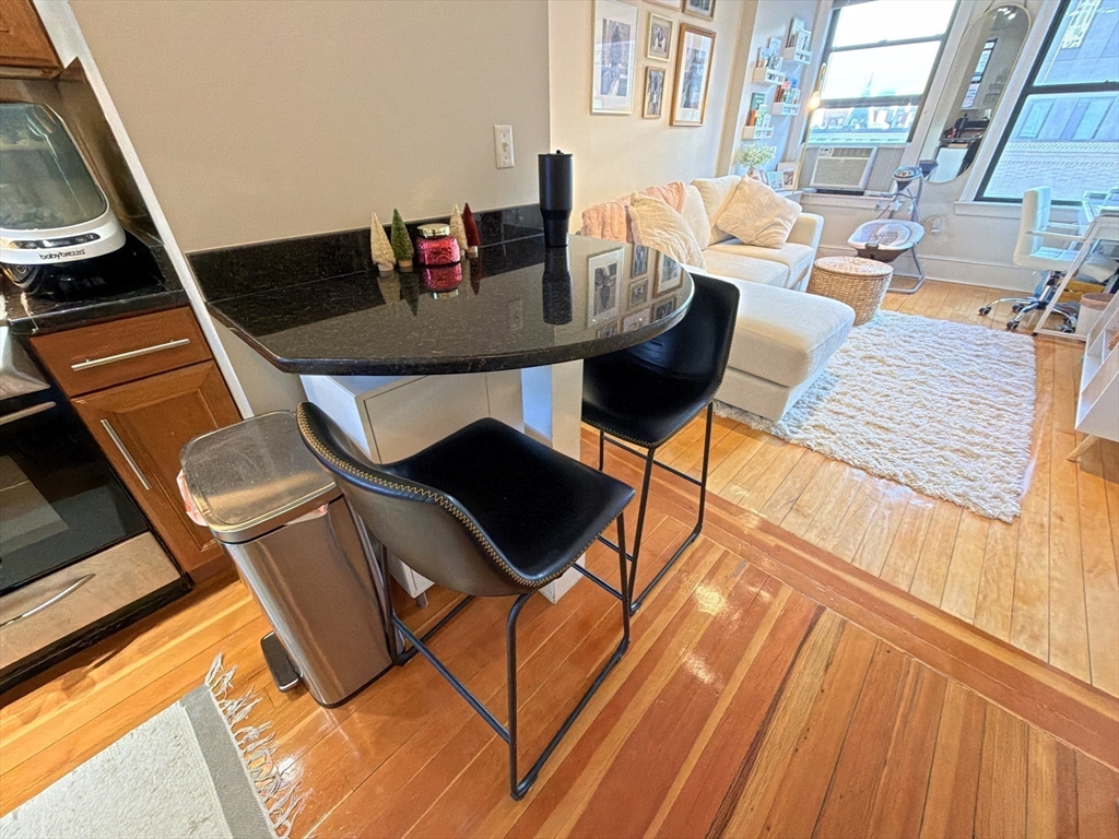 AVAILABLE JAN 1, 2026: Penthouse Perch with Sky Views & Spa Vibes - Welcome to The Sky Parlor! Perched on the top floor, this unique home offers a daily 5th-floor walk-up workout, that rewards you with sky views and soaring ceilings. Features 6 luminous windows, a dreamy 2-window corner desk nook framing pure sky. The culinary quarters feature gas cooking, stainless steel appliances, dishwasher, microwave, and a built-in dining area. Retreat to a spa-inspired bath with full marble walls and a deep jacuzzi-style tub. Located in the beating heart of the city: just 1 block to Whole Foods, 2 blocks to Symphony Hall & MBTA Subway Orange Line. Surrounded by the creative energy of Berklee, Boston Conservatory, MFA, Northeastern U, MassArt, and the borders of Back Bay/South End. Optional: Purchase existing furniture w/ lots of hidden storage, for a turnkey move. Common laundry in the building. Rent includes Heat/Hot Water - tenant just pays Elec. A classy gem for the spirited city dweller!
