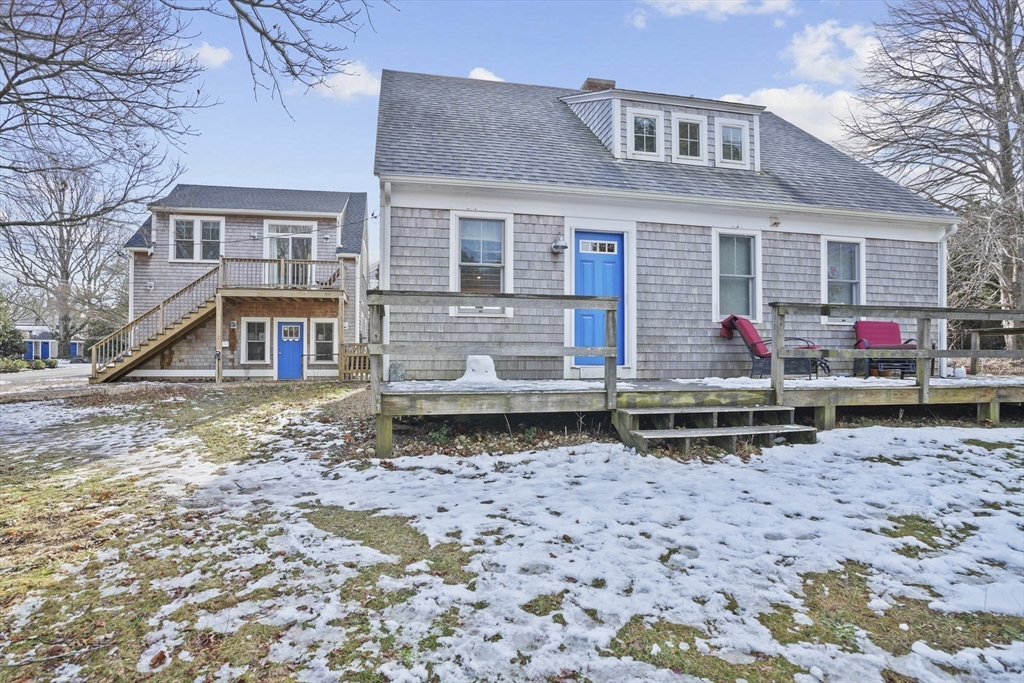 Post-and-beam style Edgartown home in a quiet, established neighborhood just minutes from downtown. This year-round property offers functional living spaces, a thoughtful layout, and generous outdoor areas ideal for relaxing or entertaining. The property is currently configured as a three-bedroom, 1-1/2 bathroom main house with a 1BR/1BA accessory apartment over a one-car, detached garage on a 1/2 acre lot. The garage structure also boasts a finished first floor studio space. The large, level lot also presents an excellent opportunity for those looking to start new and create a custom island retreat or private oasis complete with a pool. This property can be connected to town sewer and support up to six bedrooms with a grandfathered guest house. Located close to shops, restaurants, beaches, and the harbor, the home provides a perfect blend of convenience and privacy — ideal for year-round living, vacation use, or rental potential in one of Edgartown’s most sought-after areas.