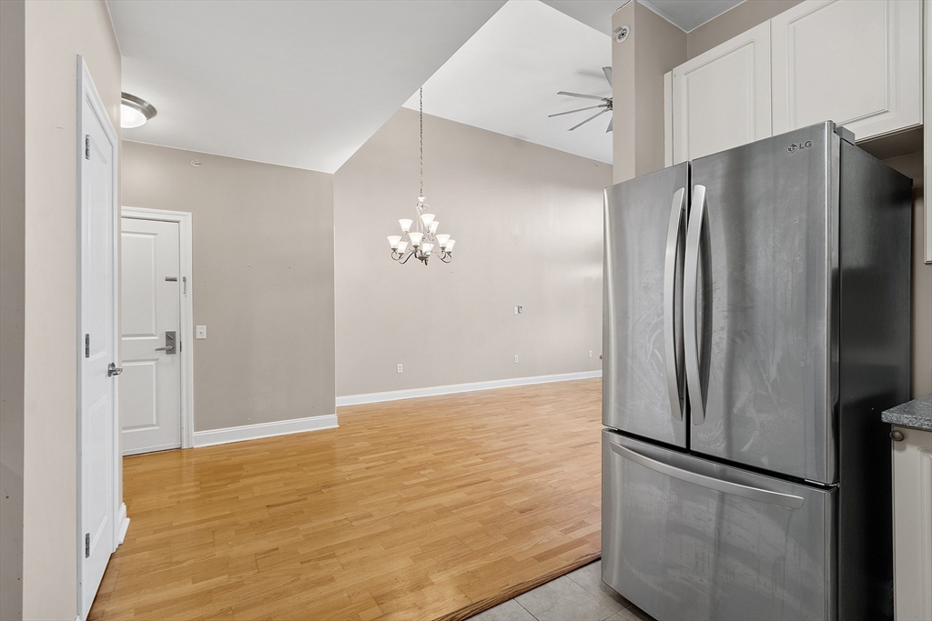 Beautifully maintained corner penthouse in the highly desirable Oakridge Village, conveniently located just past the Middleton line in North Andover. This bright, third-floor unit offers an open-concept living space with soaring 13-foot cathedral ceilings and gleaming hardwood floors. The updated kitchen boasts granite countertops, natural wood cabinets, and a stainless steel fridge, perfect for entertaining. The spacious primary bedroom features an en-suite bath, while a second large bedroom has access to another full bath. Enjoy the private clubhouse across the street, offering a gym, function room, and heated indoor pool. Additional features include central air, in-unit laundry, and one deeded parking spot. The building is professionally managed, pet-friendly, and includes an elevator with handicap access. Ample guest parking is also available. Quick access to major highways like 495, 95, and 93, along with nearby Harold Parker State Forest, hiking, biking trails, and restaurants.