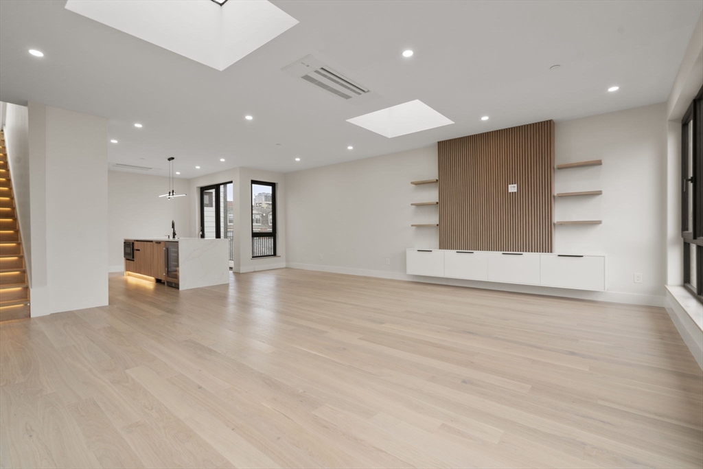 Welcome to 152 West Third, Unit 1, the Owner’s Unit—a stunning 2024 new-construction bi-level home that was lived in and meticulously cared for by the developer. Wow-factors await at every turn, starting with motion-sensor LED-lit stairs leading to a bright living space filled with oversized windows. The open layout easily fits a dining table and centers around a beautiful built-in media wall that flows to a private deck and a gourmet kitchen with an induction cooktop, quartz counters, vented hood, wine fridge, paneled appliances, and a sleek hidden pantry seamlessly integrated into the cabinetry. Enjoy a second outdoor space—a private, fenced-in patio perfect for relaxing or entertaining. Three spa-like bathrooms offer high-end finishes throughout. With garage parking, efficient heating/cooling, and a highly walkable location, this home is a must-see.