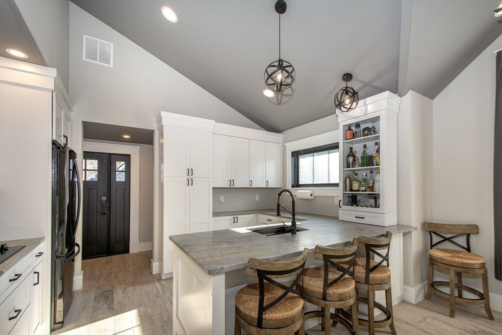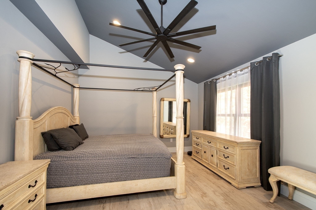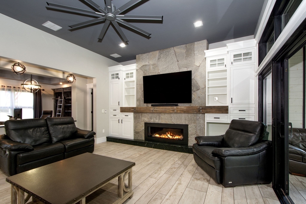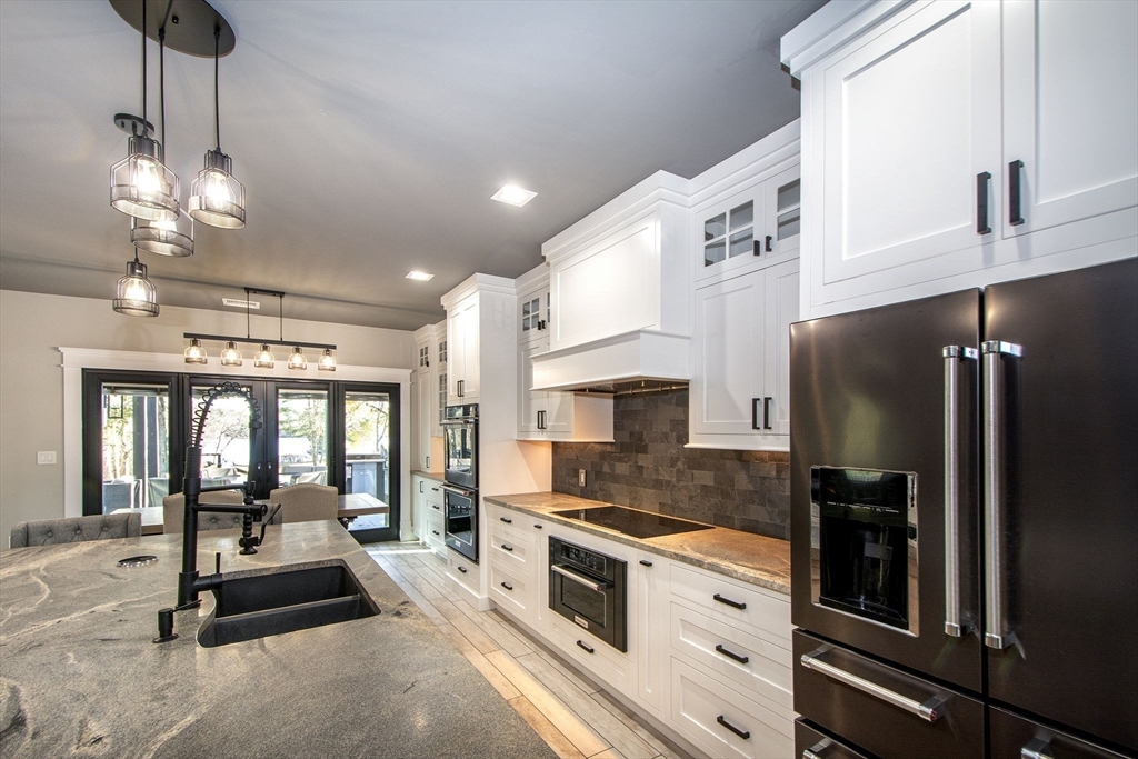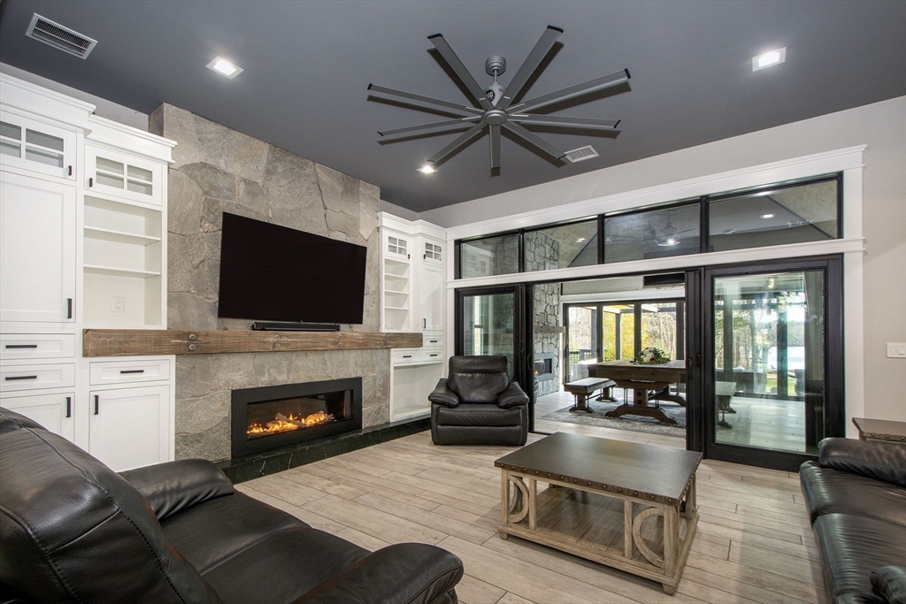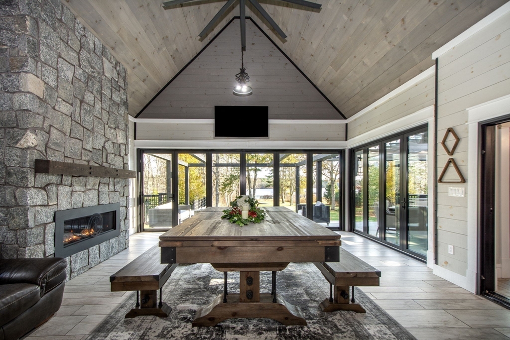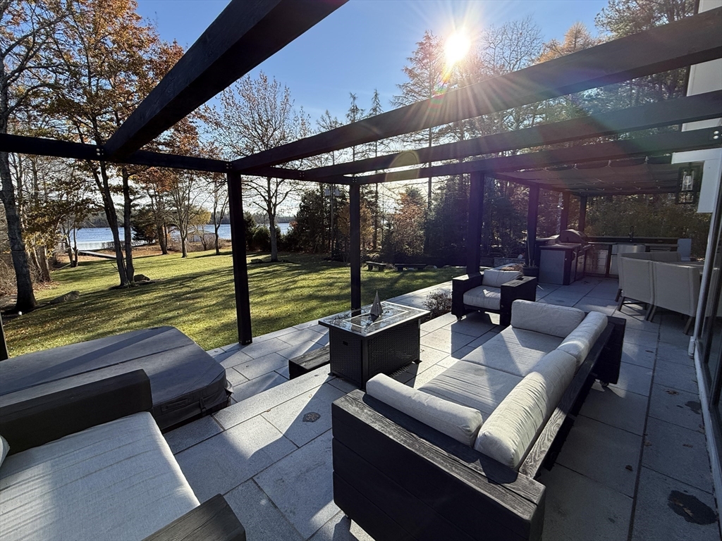 Sampson's Pond waterfront retreat, created with remarkable attention to detail! From the serene water views, radiant heating throughout the first floor, gorgeous kitchen with honed granite, island, smart appliances, pantry, and dining area, to the large warm & inviting family room with its stone fireplace, this home offers livable luxury. Two bedroom suites, two bedrooms w/ adjoining bath, plus separate 1 bedroom ADU, and multiple entertaining areas, this home accommodates a crowd. Interior walls are insulated & soundproofed, adding to its relaxed tone. Upstairs gym, sauna, & full bath. Indoor/outdoor living areas blend seamlessly w/ the fireplaced billiard/dining room panoramic doors opening completely onto the two tiered stone patio w/ granite outdoor kitchen, pergola, and seating areas, overlooking the water and landscaped fenced yard. Sit by the secluded fire pit, or enjoy the fully recreational pond from your private dock. Car collectors will love garaged space for 15+.