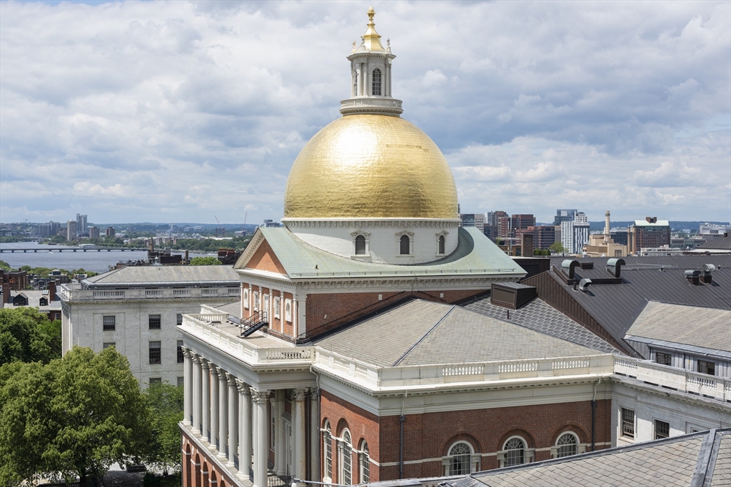 Sunny, 10th floor 1 bed facing Beacon St and the Athenaeum. This renovated unit features refinished parquet wood floors, high ceilings, large windows, granite counter in the kitchen, stainless appliances and a tile bathroom. 21 Beacon St is a concierge building beside the State House and the Boston Common. If features a common roofdeck in the same hall as this condo. Each floor has common laundry and a trash room. Convenient location close to the Red Park St T stop, shopping and restaurants.