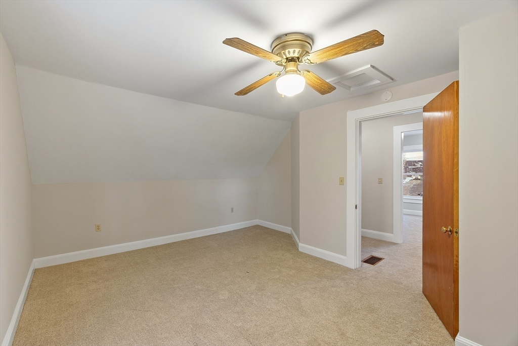 Very well maintained home situated at the top of Wilson Street. First floor with a large sunny modern kitchen and dining area. A slider takes you to a very large composite deck and flat back yard. The kitchen area is wide open with wonderful flexible space for dining and living. First floor bedroom with two more upstairs. The interior was just painted. New carpeting in the bedrooms. Updated heat and electric systems. This home is minutes away from route 495 and New Hampshire shopping and restaurants. Haverhill has several newer schools, parks, walking trails and golf courses. There is a lovely down town filled with shops, dining and a river walk. 2 commuter trains with parking.