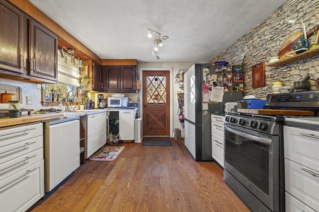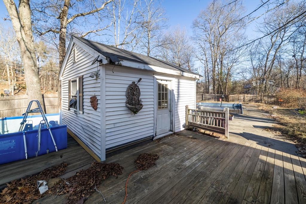 Front-to-back split-entry home with 3 bedrooms and 1 bath, set on a .69-acre level corner lot in the desirable North Easton, Cosma Road neighborhood. The exterior features low-maintenance vinyl siding and vinyl replacement windows, while the fenced yard includes an inground pool and storage shed for outdoor enjoyment. Inside, the first level offers an eat-in kitchen and dining area, plus a living room with fireplace and laminate flooring. Upstairs are three spacious bedrooms with hardwood floors and a full bath with tub and shower, while the lower level provides additional finished space ideal for a playroom, office etc. The roof was replaced in 2023..