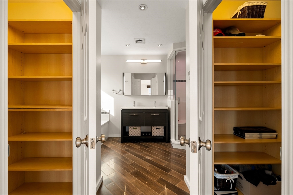 Beautiful Colonial in Coveted Pigeon Hill Estates! Perched high in one of Waltham’s most desirable neighborhoods, this sun-filled Colonial offers an inviting open floor plan ideal for modern living. The open foyer leads to an updated kitchen with dining area that flows into the cathedral-ceiling family room with a fireplace—perfect for entertaining or everyday comfort. A private first-floor office, half bath and laundry room complete the main level. Upstairs features three spacious bedrooms, including a large primary suite with a luxurious en-suite bath and California-style walk-in closets, plus a main hall bath. The finished lower level offers bonus space with direct access to the two-car garage. Additional highlights include a 2016 roof, owned solar panels, and a Tesla whole-home battery backup for outstanding energy efficiency and backup power. Enjoy the expansive backyard with a large patio and sweeping views of Boston.