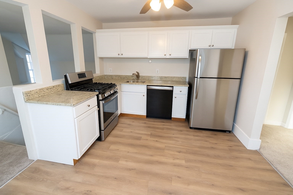 Well-maintained 3-bedroom, 1-bath apartment in a highly convenient downtown Canton location. This spacious unit includes an additional room ideal for a home office, hardwood floors, new carpet, and ample closet space throughout. The updated kitchen features new appliances and a dishwasher. Extra attic storage and two off-street parking spaces included. Close to the commuter rail, restaurants, shops, and highway access .Application, references, and credit check required.