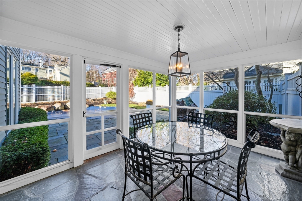 Welcome to this beautifully maintained Colonial in a highly desirable family neighborhood directly across from a scenic conservation area. The main level offers a bright, seamless flow with a living room, dining room, updated kitchen, full bath, family room, and a sunroom opening to the backyard. Upstairs features three comfortable bedrooms and a full bath, while the third-floor bonus room offers excellent flexibility for a fourth bedroom, office, or studio. The finished lower level adds even more living space with a laundry room, storage room, and a versatile area ideal for a playroom, media room, or home gym. Outside, enjoy a private, fully fenced yard with an inground pool, perfect for entertaining. A rare combination of space, comfort, and lifestyle.