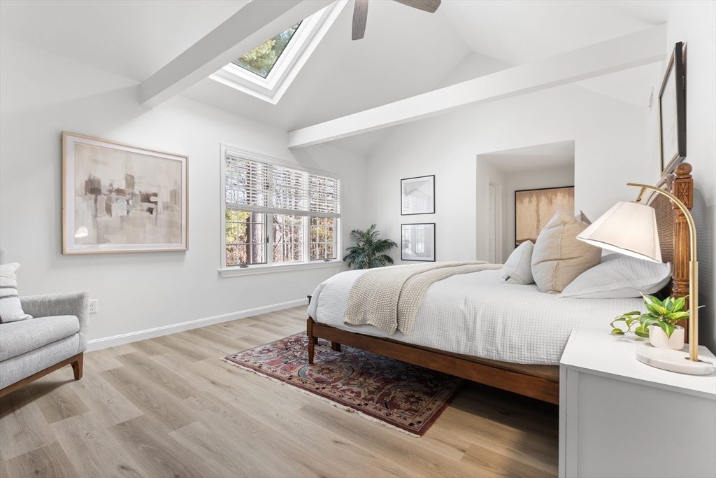 A RARE FIND AT FULLER POND VILLAGE! This RECENTLY RENOVATED 2-bedroom townhome offers exceptional privacy with serene wooded views from both the front and back. THE GENEROUSLY SIZED BACK DECK IS COMPLETELY PRIVATE—aside from the occasional turkey—and perfect for relaxing or entertaining. The kitchen features NEW STAINLESS STEEL APPLIANCES, quartz counters, updated flooring, and a bright dining area with picture window. Enjoy OPEN CONCEPT dining & living room space which includes a cozy wood-burning fireplace. A half bath and laundry complete this floor. THE FULLY FINISHED LOWER LEVEL includes an office, spacious seating area, full bar with sink, & a walk-out patio—also TOTALLY PRIVATE. Upstairs, is A PRIMARY SUITE WITH VAULTED CEILINGS and private bath, plus a second bedroom and full bath. BONUS: A FULL WALK UP ATTIC, perfect for storage, a gym, or more. All this comes with amenities such as Indoor / Outdoor heated pool, work out room, pickleball courts, clubhouse and more!