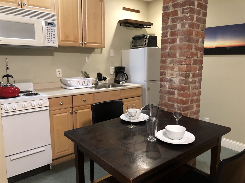 FURNISHED RENTAL. A high first floor, bright and spacious Studio with bay windows, high ceilings & hardwood floors. Full Kitchen and bath all in mint condition. Brand new washer/ drawer combo, electric range top, and refrigerator This unit is furnished with Living room, dining and bedroom furniture and kitchen necessities..Treat yourself by living in vibrant Washington Sq. of Brookline. Near shops and restaurants. Short distance to swimming pool, newly renovated Dean park, with multiple tennis courts. located between the C&D Green line train, it's an Ideal Longwood Medical Area and Downtown Boston and Newton, and easy access to major highways, Rt 9, Rt 128, 495 and Mass pike. Pets are allowed with owners' discretion. Parking is available for rent from the neighbors for $200/mo. Gas included for Hot water.. The unit is one level above street level with a private entrance and patio in the back.